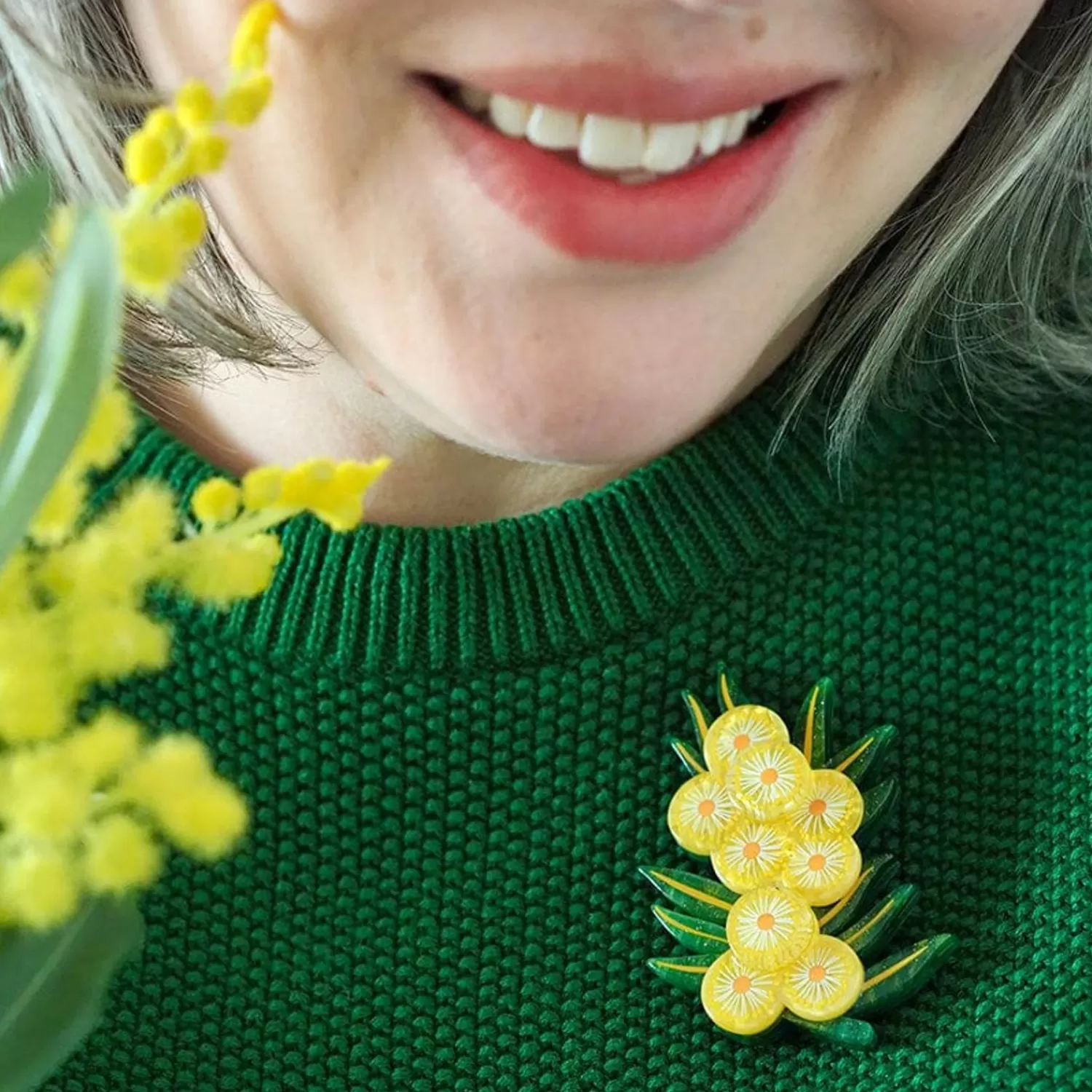 Hand-Assembled From A Selection Of Vibrant Resins And Featuring A Combination Of Printed And Painted Details, This Acacia In Gold Brooch Is Part Of The Third Erstwilder X Jocelyn Proust Designs Collaboration. This Iconic Floral Wattle Piece Pairs Perfectly With Our Yellow Efflorescence Necklace Or With Its Matching Hard Enamel Pin.