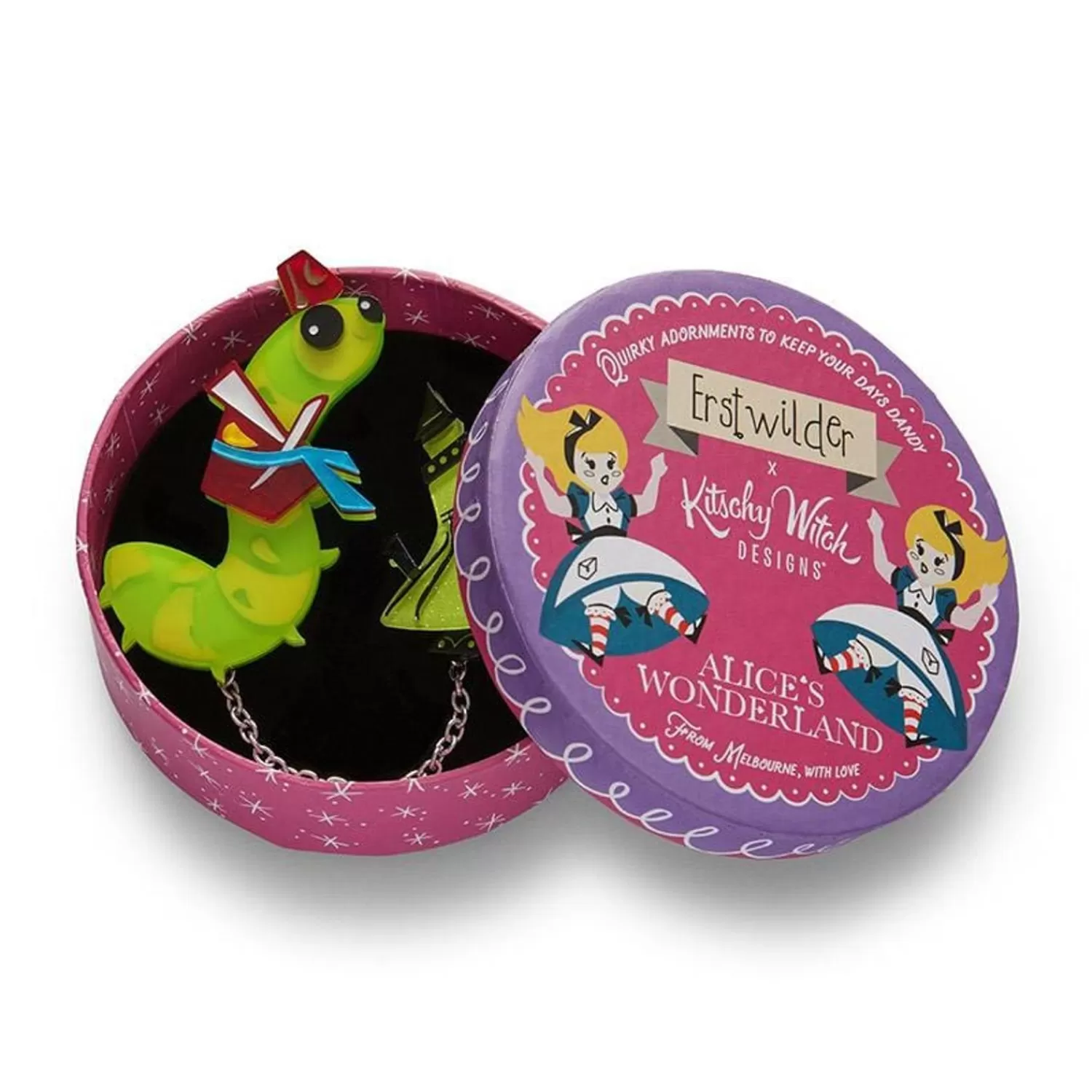Part Of Our Alice’S Wonderland Collaboration With Kitschy Witch, This Hand-Assembled Caterpillar And Hookah Double Brooch Uses A Colourful Combination Of Resins And Features Hand-Painted Details. Wear Them Together, Or On Their Own, Or Pair Them With Any Of The Other Wonderful Pieces From The Collection.