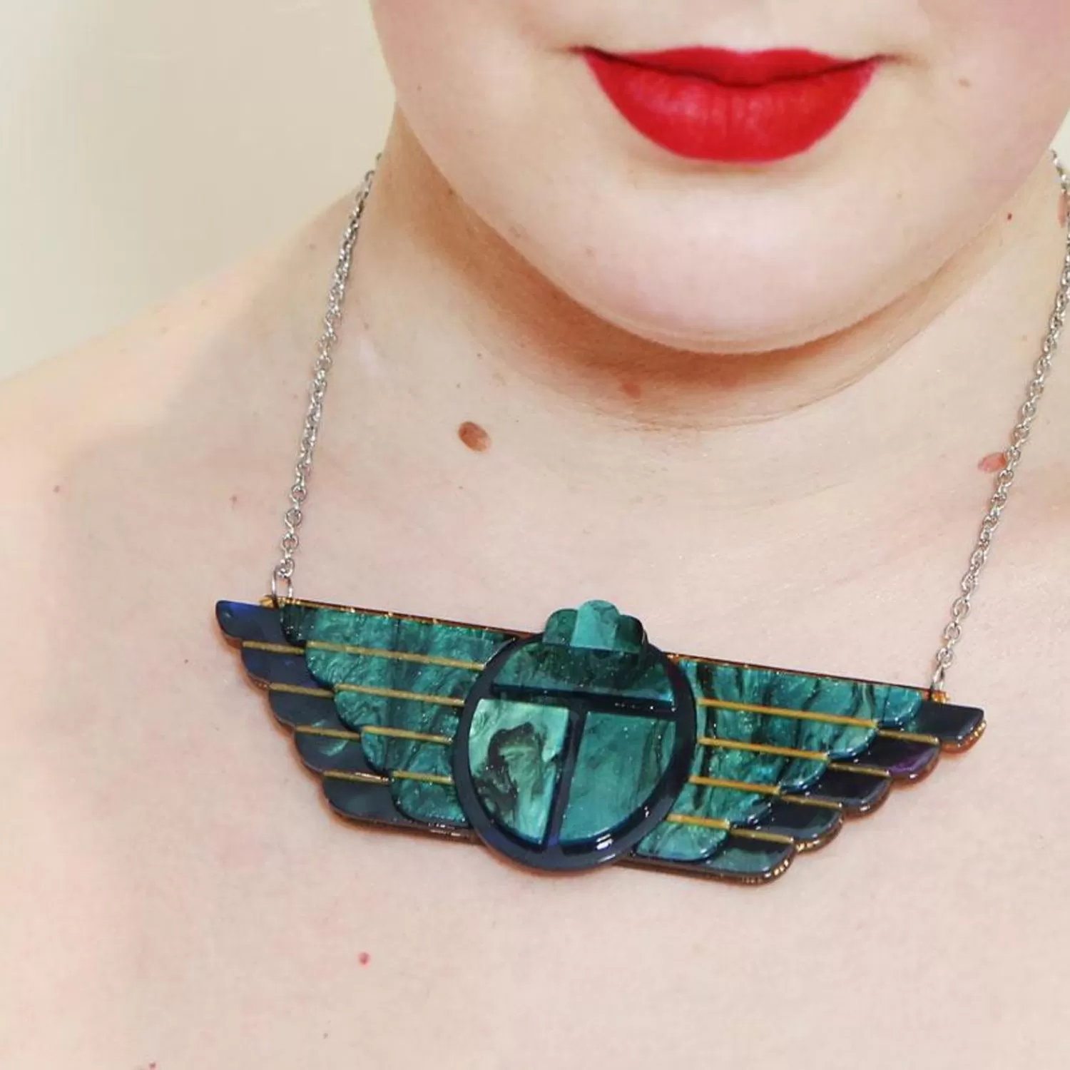 Symbolizing Immortality And Resurrection, Art Deco Was Known For Its Fascination With Ancient Egypt. Hand-Assembled Details, As Well As A Combination Of Swirling Marbled Resin With Bold Bubble Resin, Bring This Ancient Symbol To Life.