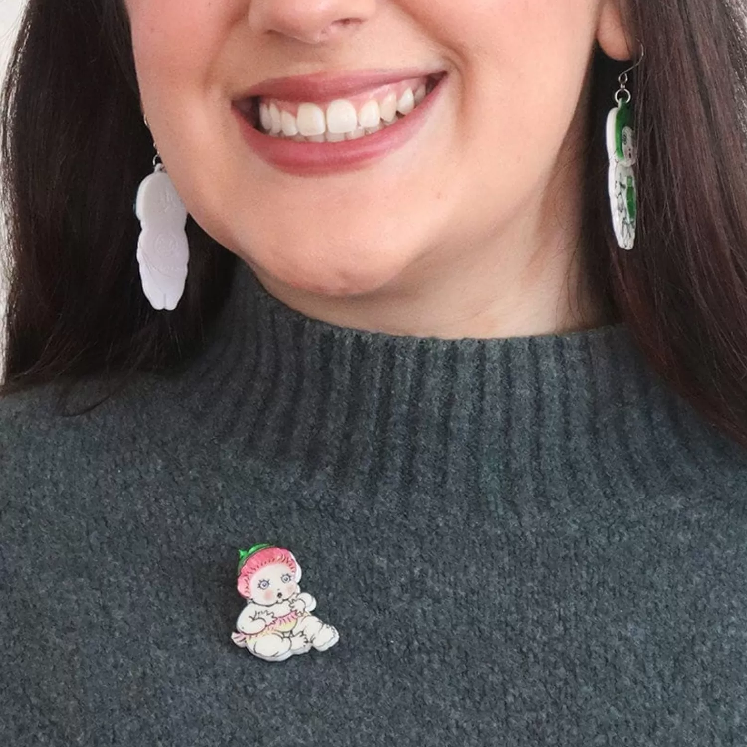 Part Of Our 2023 Erstwilder X May Gibbs Collection, This Baby Blossom Mini Brooch Has Been Caringly Constructed From Layered Resins And Finished With A Combination Of Printing And Highly Detailed Line Work. A Product Of The Imagination Of One Of Australia’S Most-Beloved Artists, Baby Blossom Is Happy To Share Her Dreams With You.