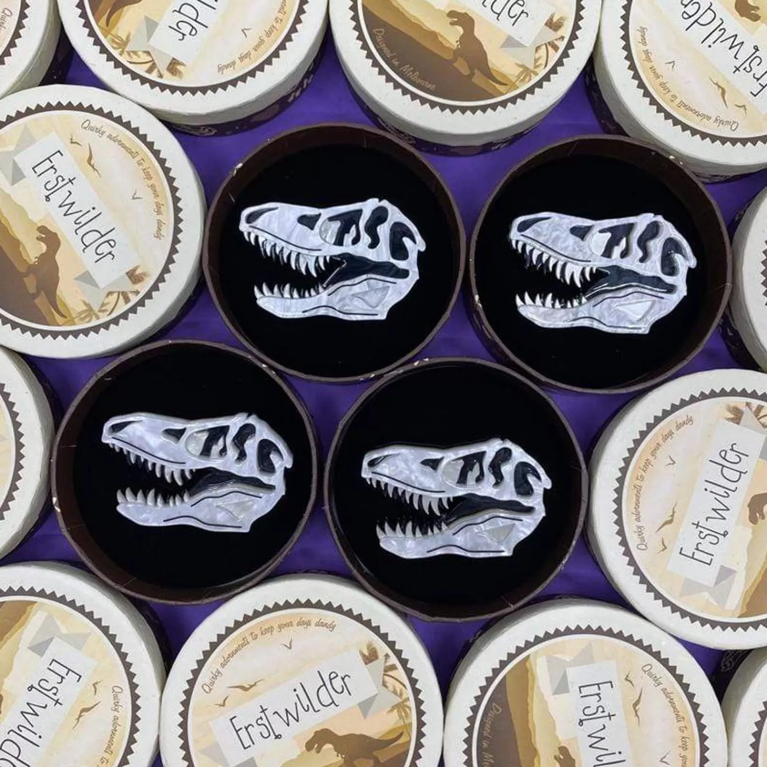 Maybe Just A Museum Memory, But This Fab Fossil Still Features Resplendent Textured White Resin Contrasting With Bold Black Resin As Well As Hand-Painted And Hand-Assembled Details. Take A Bite Out Of Life With Some Beautiful Bones!45Mm X 60MmBad To The Bone Brooch*Erstwilder Shop