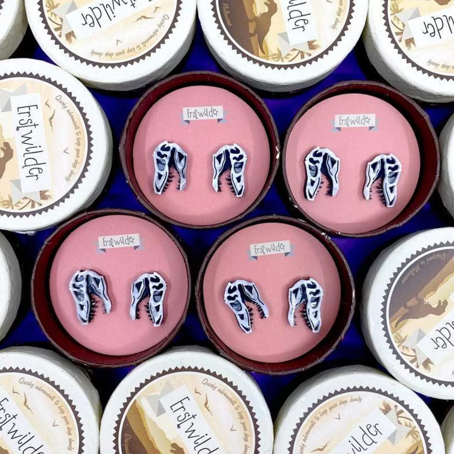 Maybe Just A Museum Memory, But This Fab Fossil Still Features Resplendent Textured White Resin Contrasting With Bold Black Resin As Well As Hand-Painted And Hand-Assembled Details. Take A Bite Out Of Life With Some Beautiful Bones!14Mm X 23Mm EachBad To The Bone Earrings*Erstwilder Hot