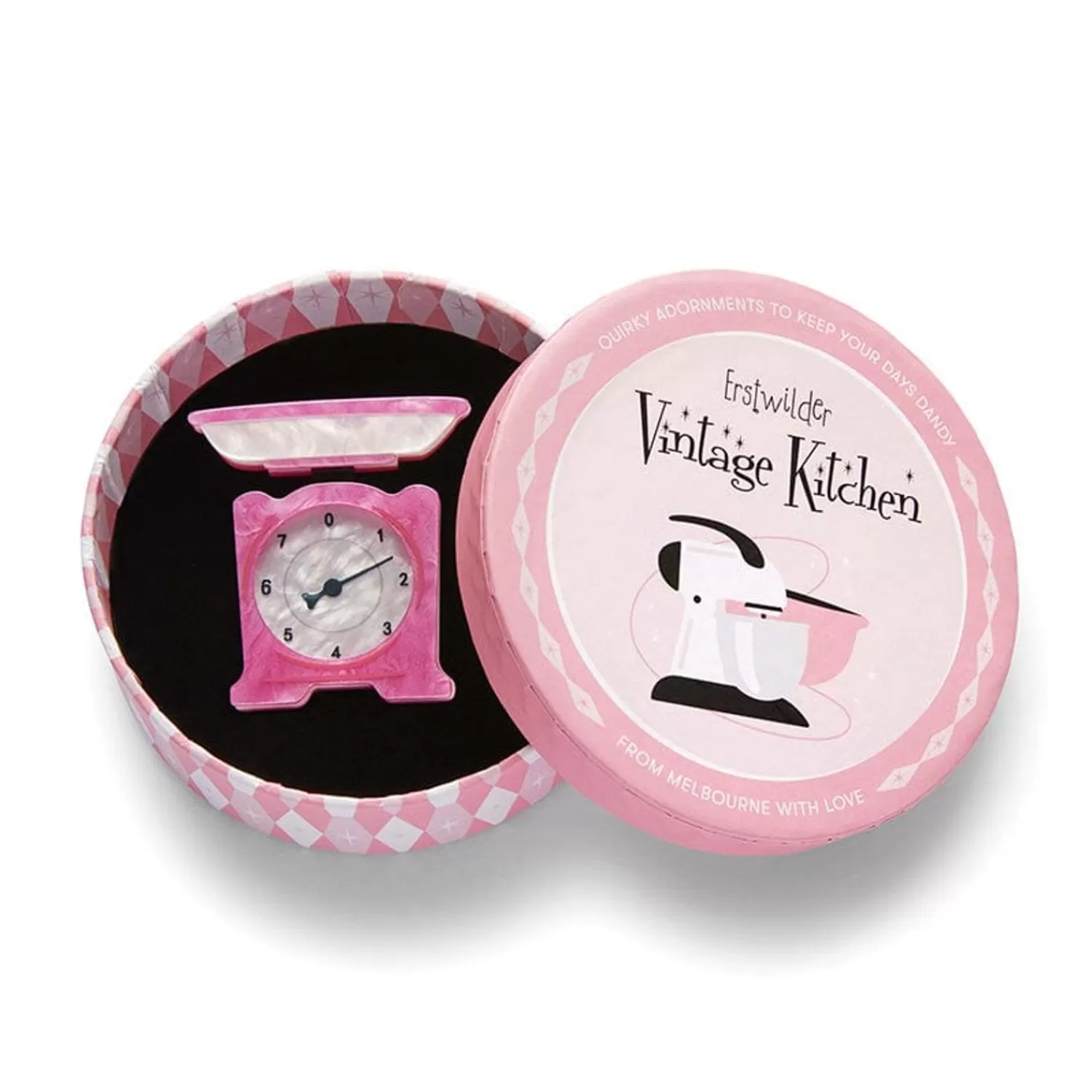 Step Back Into The Heart Of The Home With This Nostalgia-Inducing Vintage Scales Brooch, Part Of The Second Vintage Kitchen Release. Hand-Assembled From Resin And Finished With A Combination Of Printing And Etching, This Retro-Future Balance The Scales Design Will Add A Suitable Amount Of Stability To Your Selected Outfit.