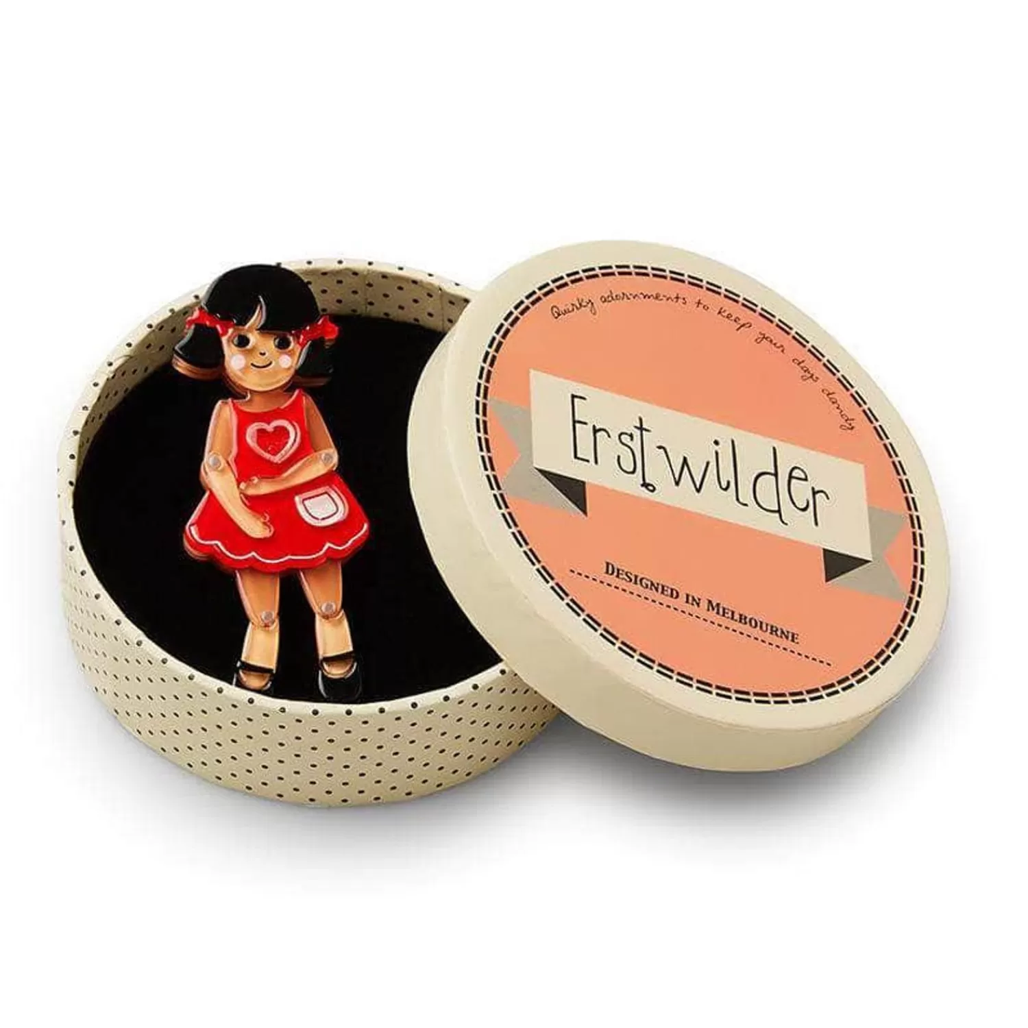 An Articulated Doll Like Our Bendy Wendy Can Do Just About Everything A Real Kid Can! Our Brooch Has Been Hand-Assembled From A Combination Of Glitter And Solid Resins And Features Hand-Painted Details Which Will Help Wendy Bring Your Outfit To Life, But Not Her, Not Without Some Serious Wishing.Original Designer Carmen Hui