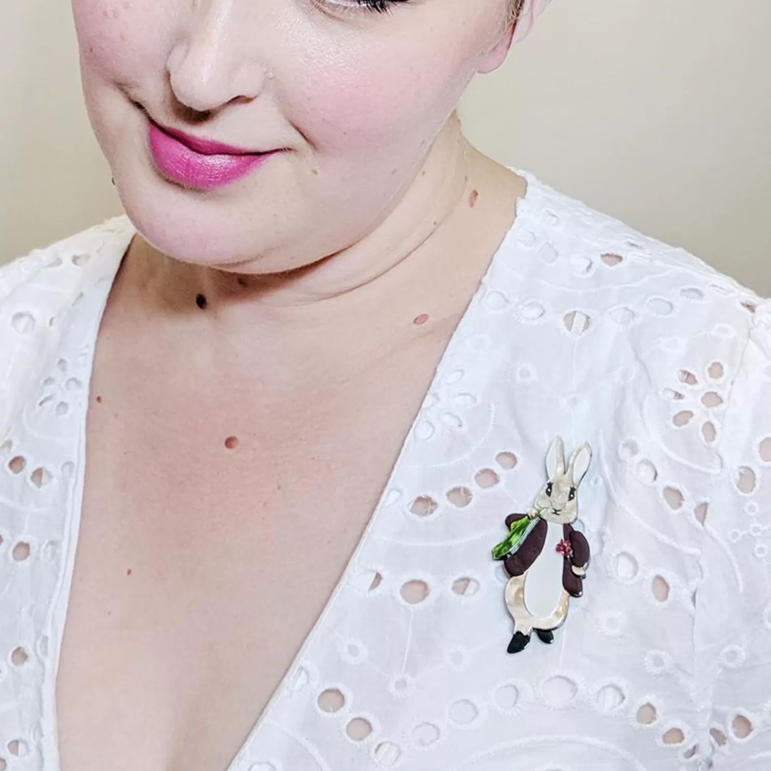Hand-Assembled From Splendid Solid And Textured Resins, This Bewitching Beatrix Potter Benjamin Bunny Brooch Features Hand-Finished Details. Part Of Our Peter Rabbit X Erstwilder Collaboration, Each Piece Comes Packaged In Our Special Edition Gift-Box With An Adorable Peter Rabbit Swing Tag.