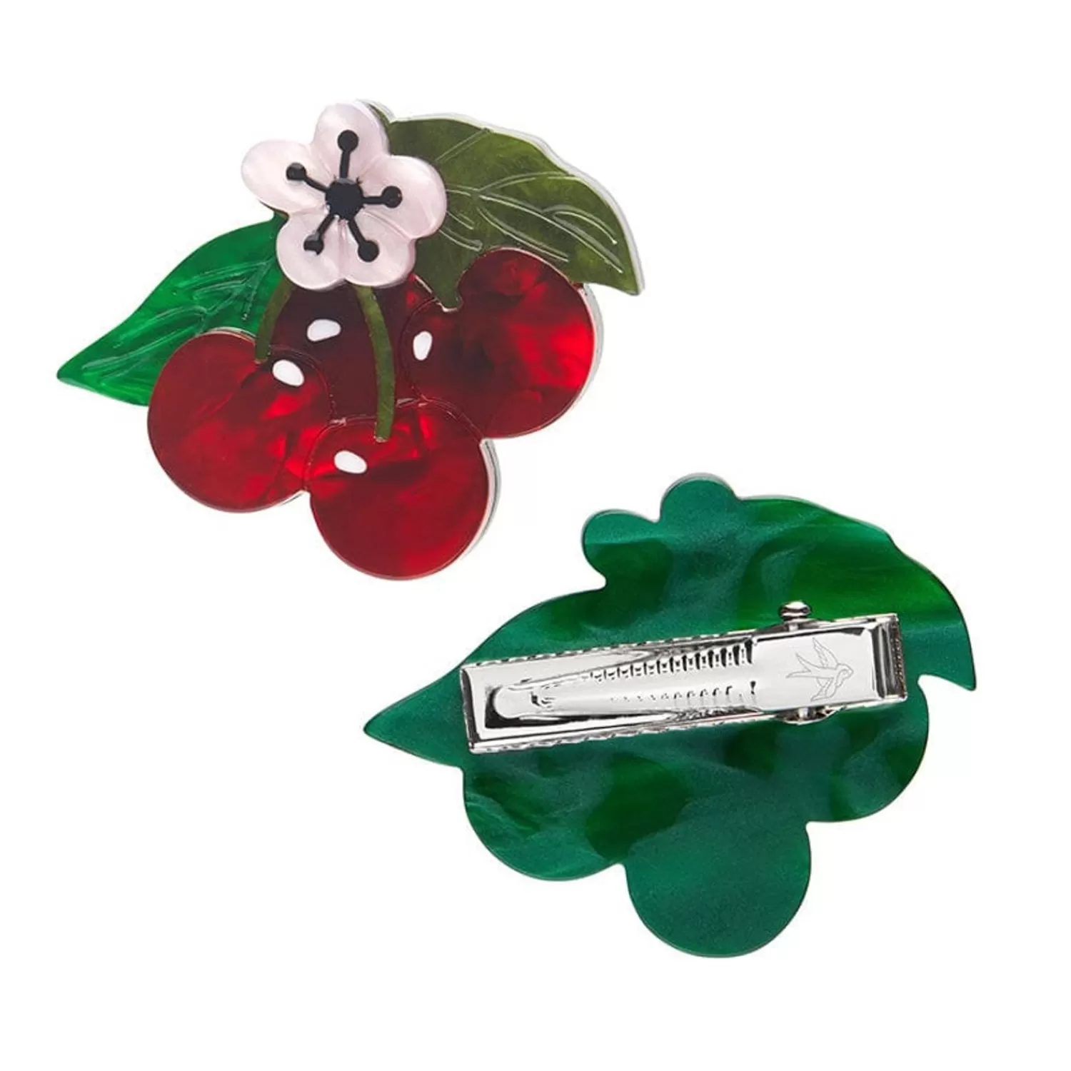 The Cherry On Top Of Your Accessories Collection! Hand-Assembled From A Mix Of Textured Red, Pink And Green Resins And With Hand-Painted Detailing, These Limited-Run Blossoming Cherries Hair Clips From The Botanical Fruit Collection Are Sure To Add A Little Fruity Freshness To Any Outfit. Pairs Perfectly With The Black Cherry Bounce Brooch And Black Cherry Precious Preserve Mini Brooch. Love This Design? You’Ll Also Discover It Available As A Resin Brooch, An Enamel Pin, And A Stunning Statement Necklace, While Stocks Last.