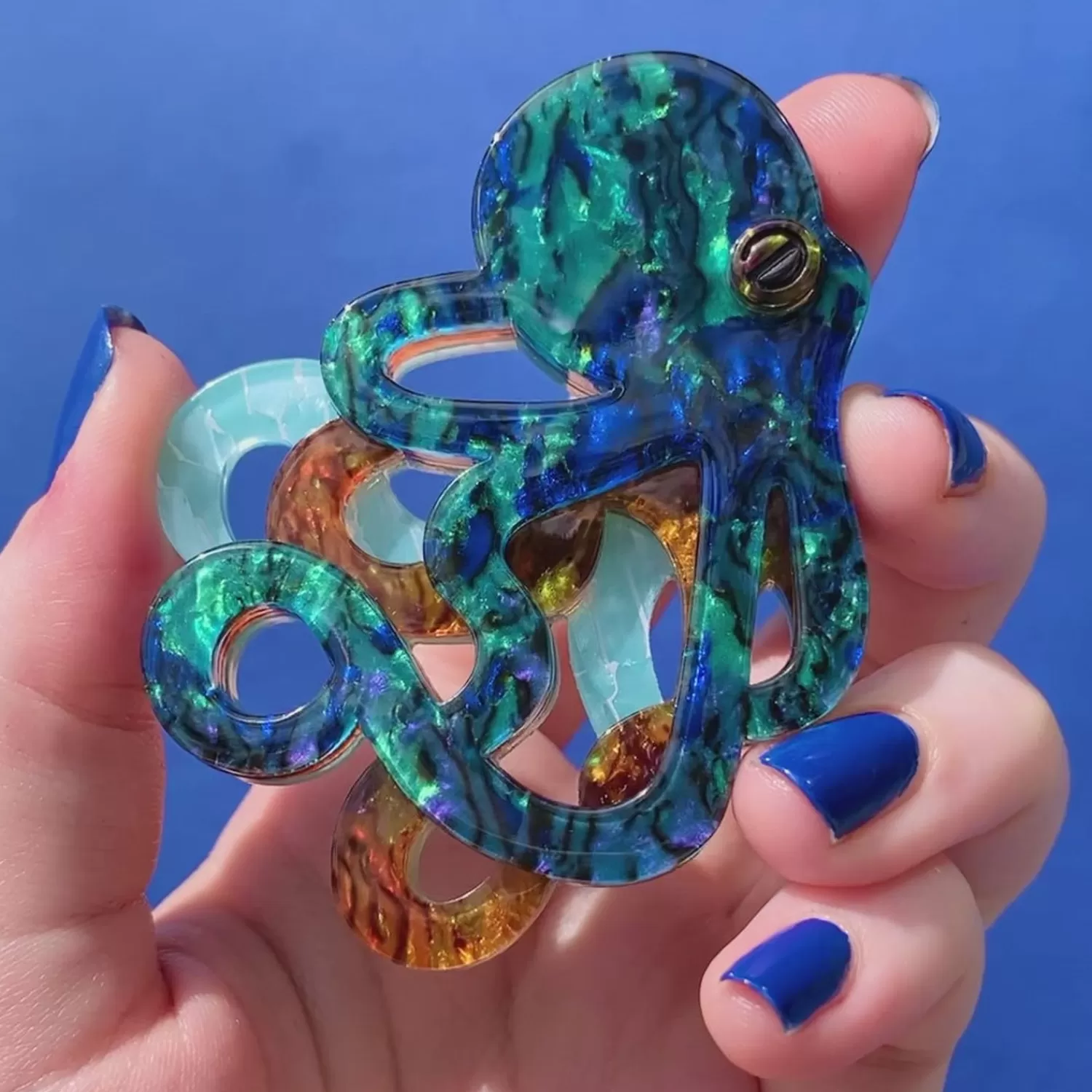Unleash The Power Of The Deep Blue Sea With This Art Nouveau Blue Octopus Brooch. Hand-Crafted From Textured Resins With…