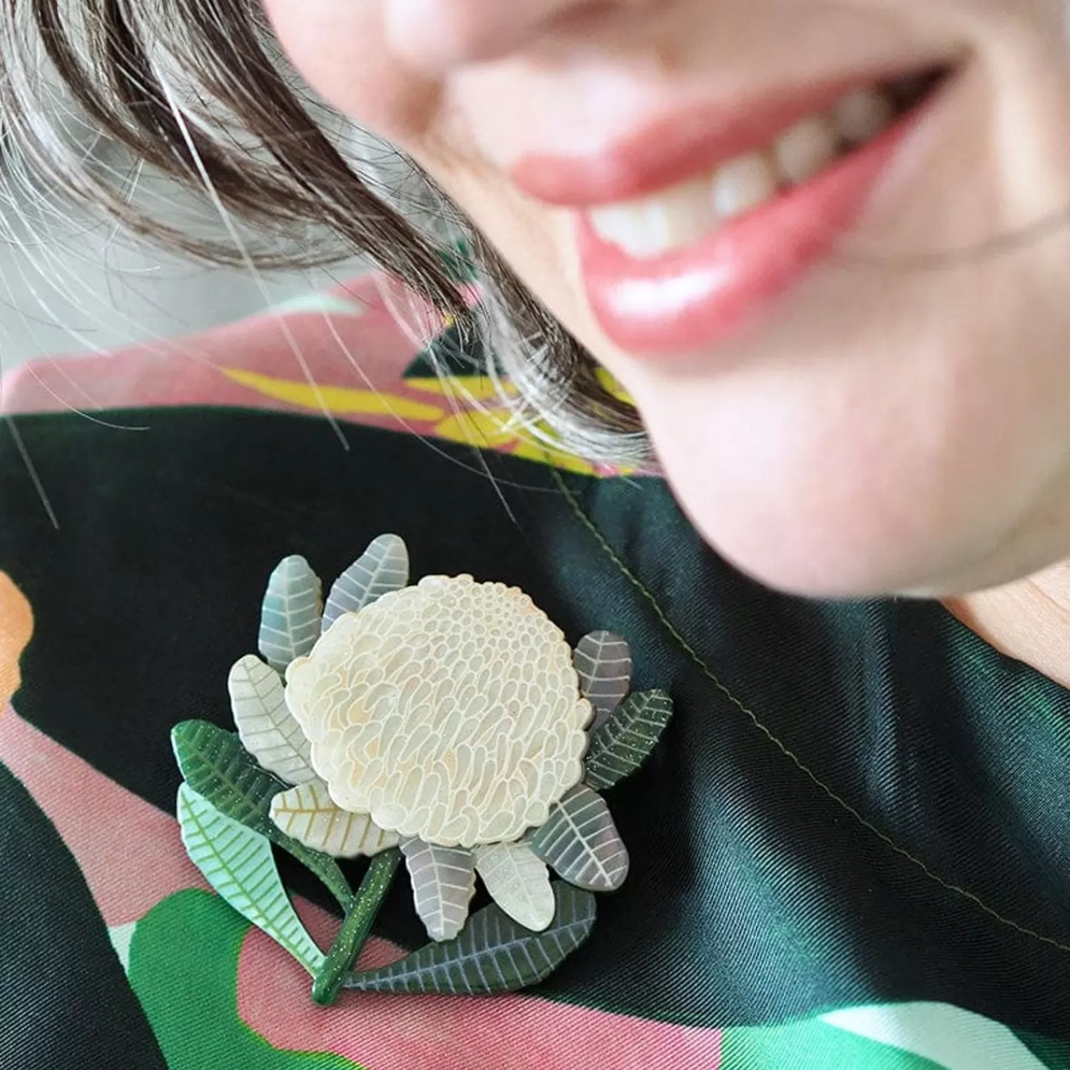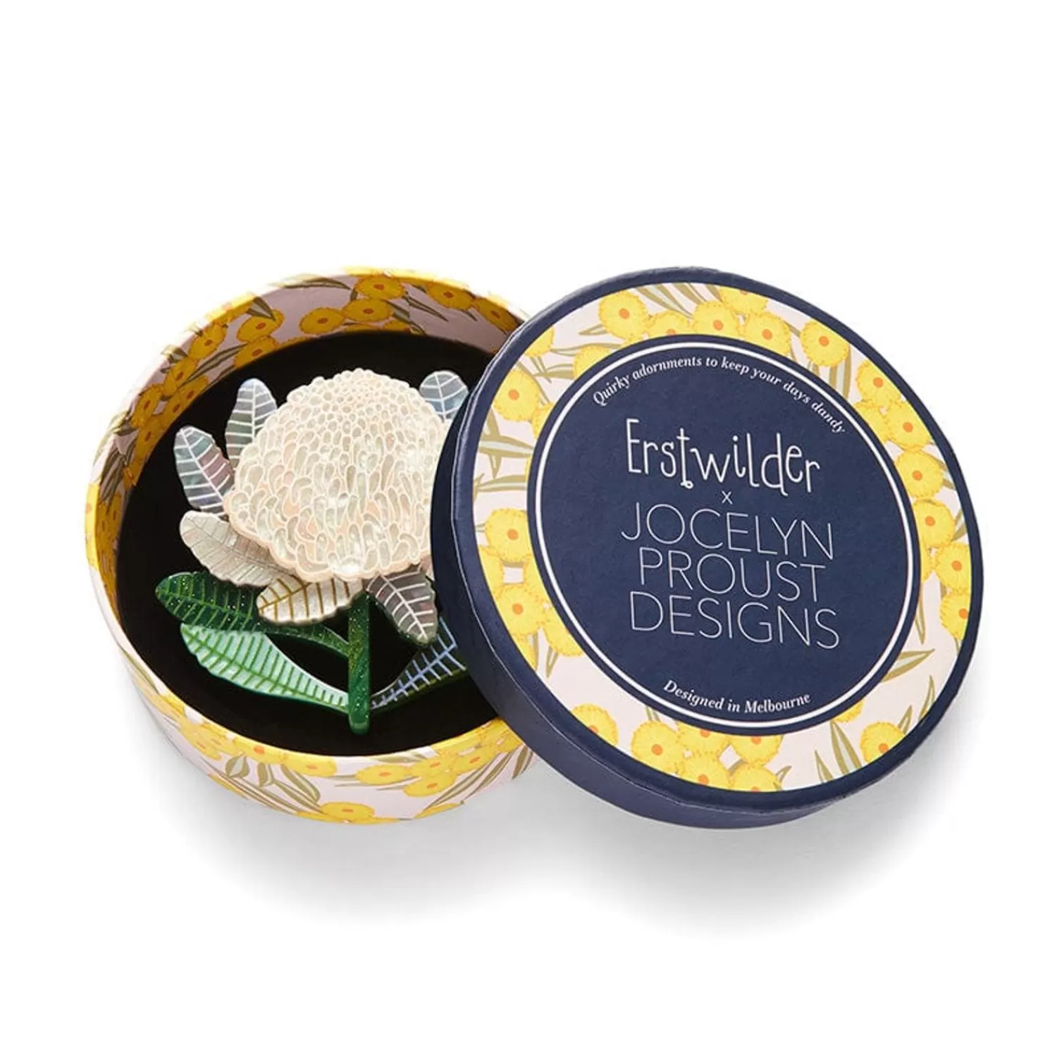 Hand-Assembled From A Selection Of Gorgeous Resins And Featuring A Combination Of Printed And Painted Details, This Waratah Brooch Is Part Of The Third Erstwilder X Jocelyn Proust Designs Collaboration. The Shady Lady White Flower May Be Much Rarer Than Her Crimson Cousin, Yet This Wearable Art Version Pairs Exceptionally Well With Any Other Design From Jocelyn’S Collections, Past And Present.