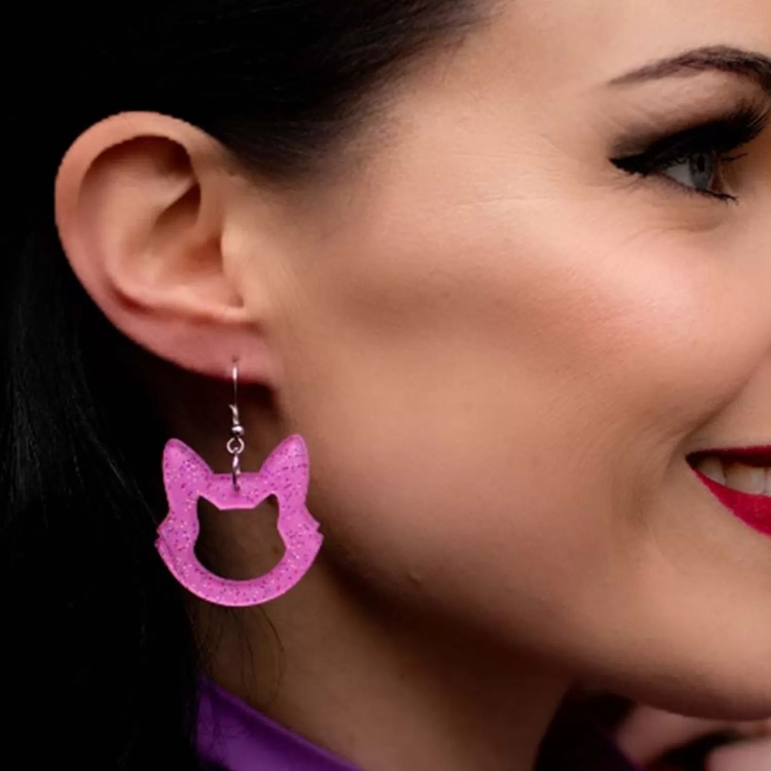 Avoid Accessory Cat-Astrophes With These Adorable Cat Head-Shaped Erstwilder Essentials Drop Earrings, Crafted From Solid Glitter Pink Resin. They Make For That Perfect Pop Of Colour To Compliment Your Outfit, Or To Match With Your Favourite Resin Or Acrylic Brooch Or Necklace. Shop All Of Your Favourite Essentials And Save More The More You Buy!