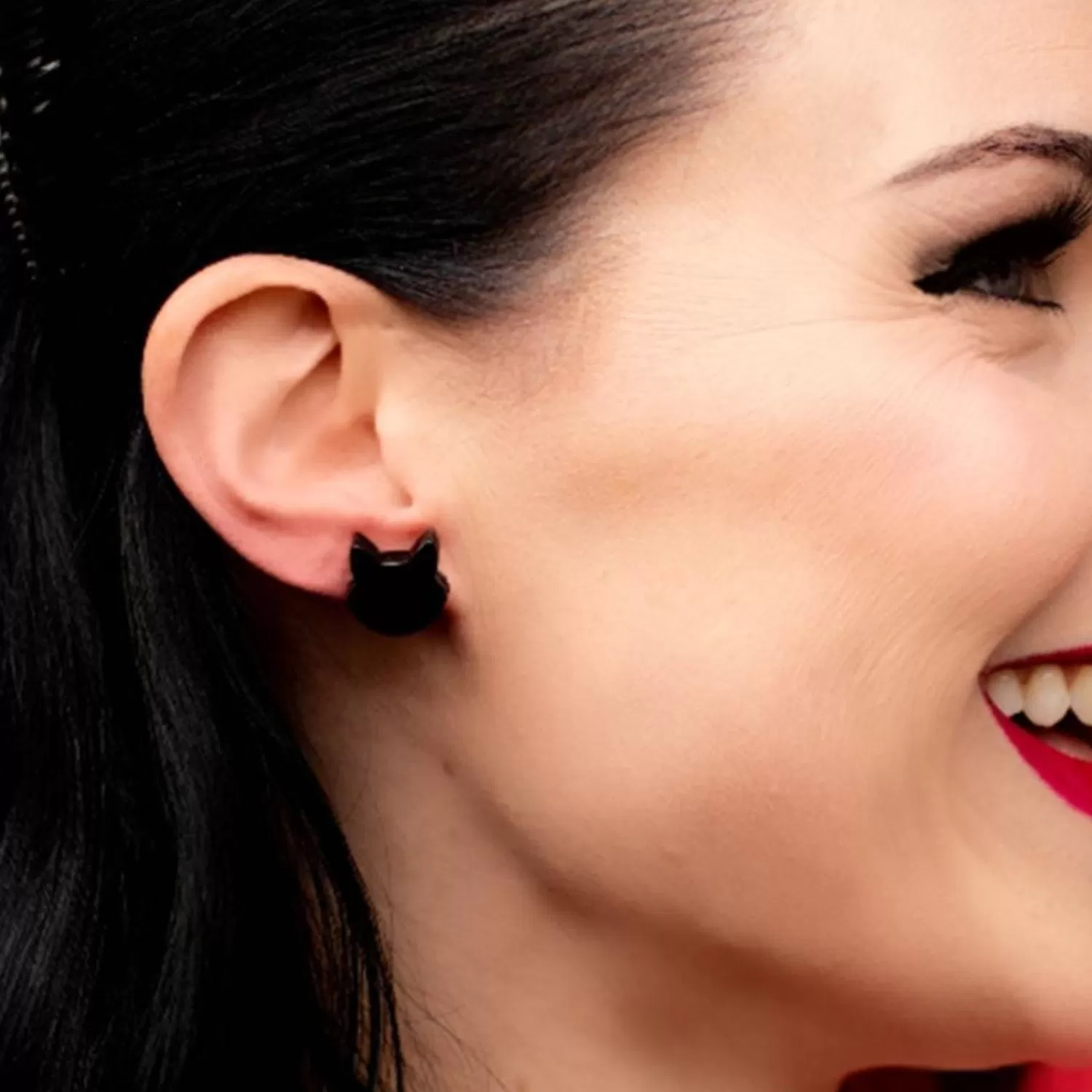 Avoid Accessory Cat-Astrophes With These Adorable Cat Head-Shaped Erstwilder Essentials Stud Earrings, Crafted From Ripple Black Resin. They Make For That Perfect Pop Of Colour To Compliment Your Outfit, Or To Match With Your Favourite Resin Or Acrylic Brooch Or Necklace. Shop All Of Your Favourite Essentials And Save More The More You Buy!