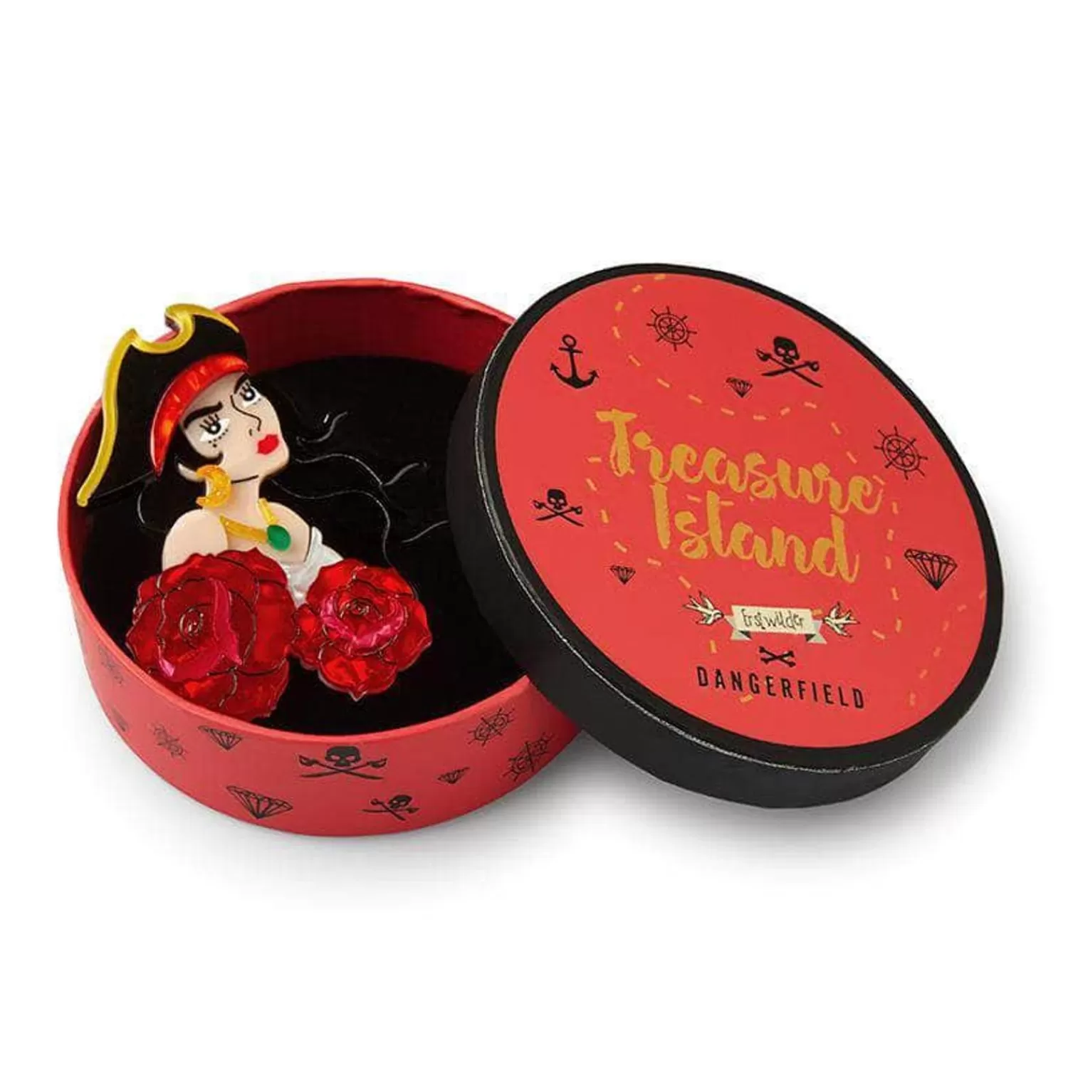 She’Ll Steal Your Heart And Then Your Ship! Erstwilder X Dangerfield’S Enchanting Pirate Brooch Has Been Hand-Assembled From A Selection Of Solid And Textured Resins And Features Hand-Finished Details. Who Could Possibly Resist Her Coquettish Caribbean Charm?Original Designer Jess Racklyeft
