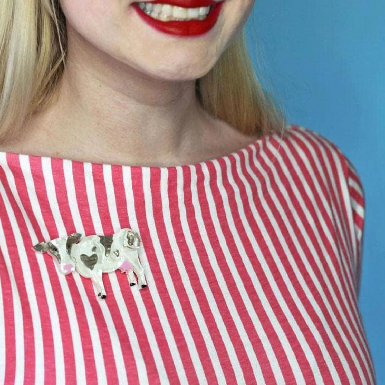 Designed In Collaboration With Junebugs And Georgia Peaches, Dance Till The Someone Comes Home With This Darling Dairy Cow Brooch. Created From A Combination Of Patterned And Textured Resins With Hand-Painted Details, We Say She?S An Udder Delight. Modelled By @Modernjunecleaver And @Ameliajetson