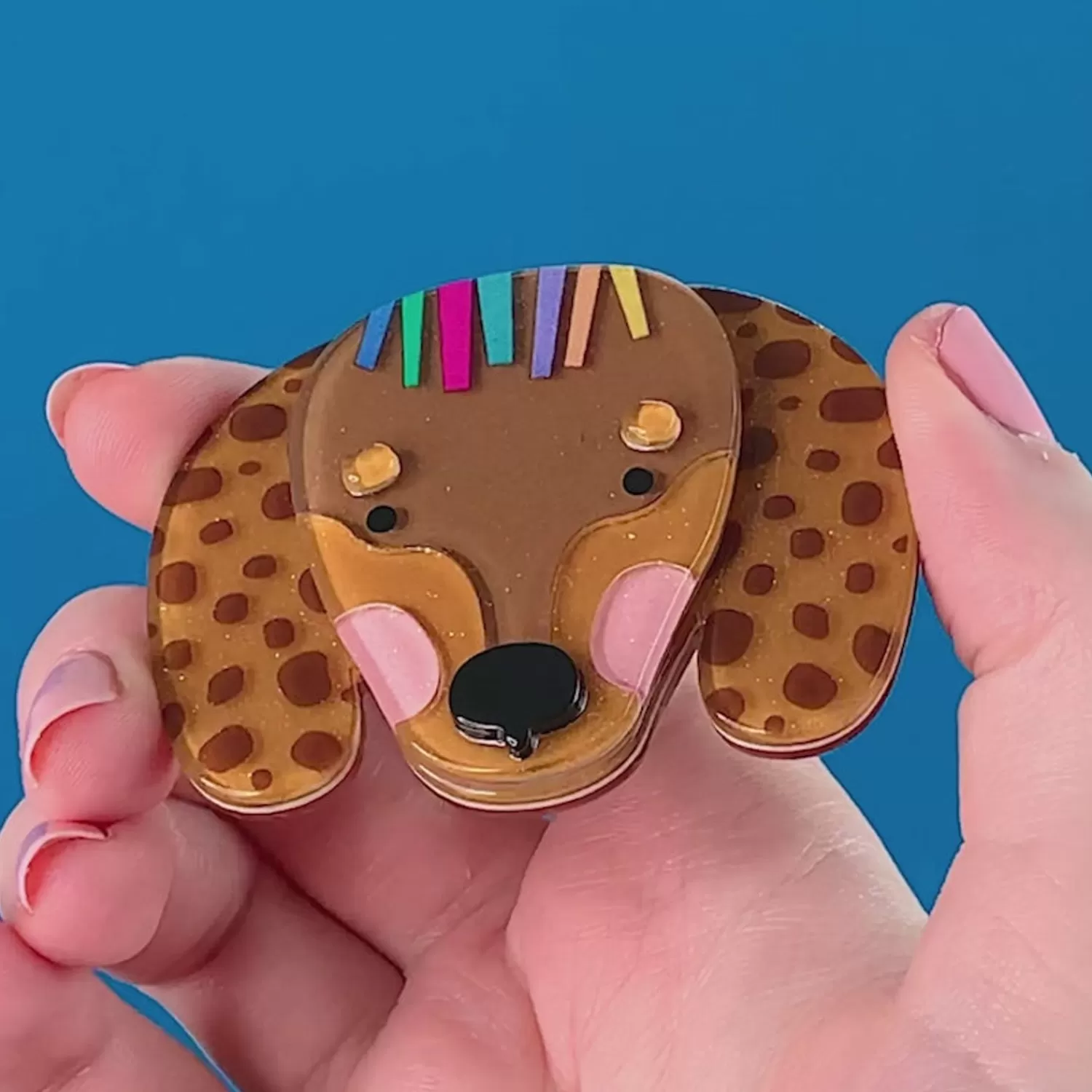 This Erstwilder X Kasey Rainbow Darcy The Dachshund Brooch Has Been Hand-Assembled From A Combination Of Colourful Resin…