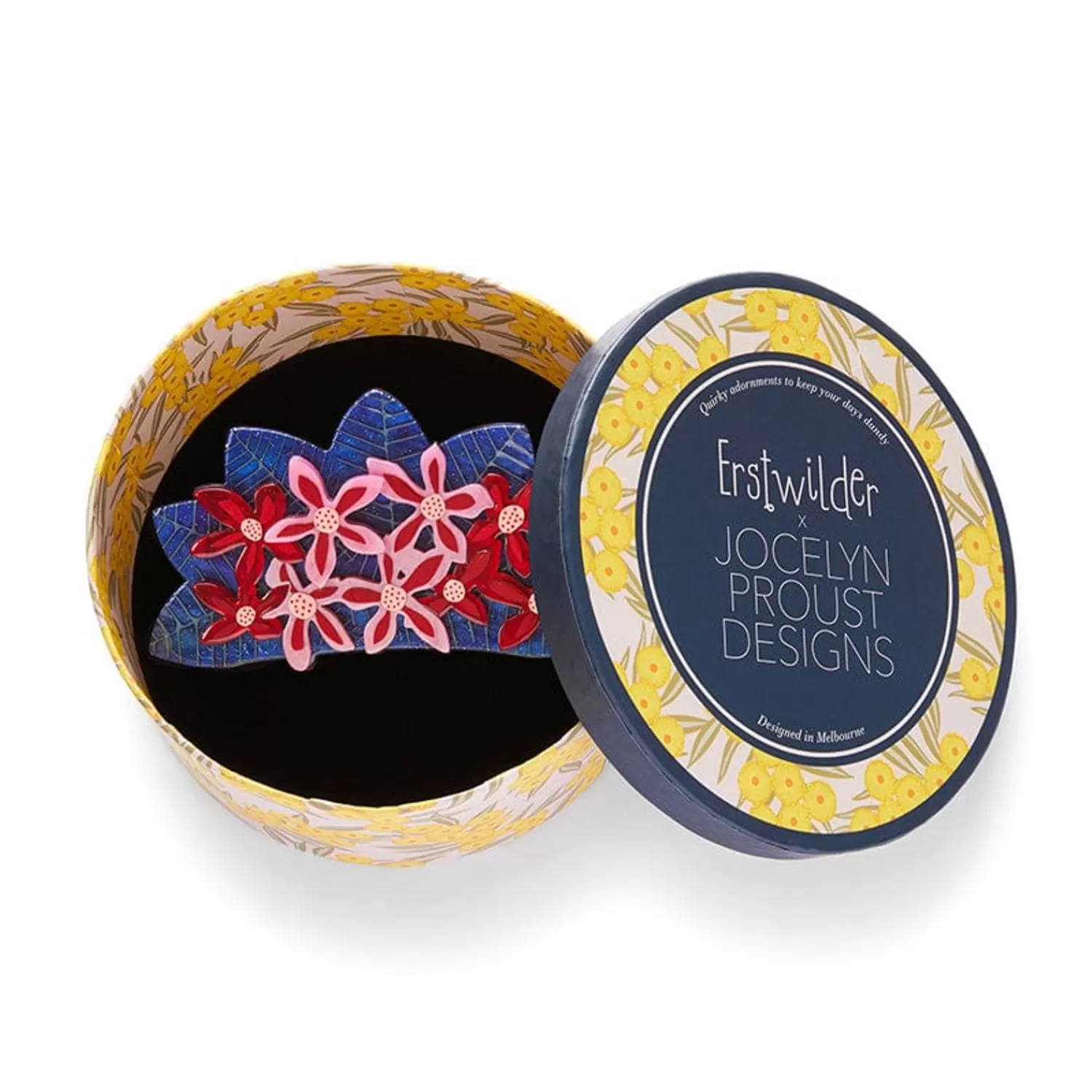 Hand-Assembled From A Selection Of Colourful Resins And Featuring A Combination Of Printed And Painted Details, This Christmas Bush Hair Clip Claw Is Part Of The Third Erstwilder X Jocelyn Proust Designs Collaboration. Festive Fashion That Can Be Worn All Year Round, The Dawn Of December Pairs Exceptionally Well With Its Matching Brooch, Earrings, And Necklace.