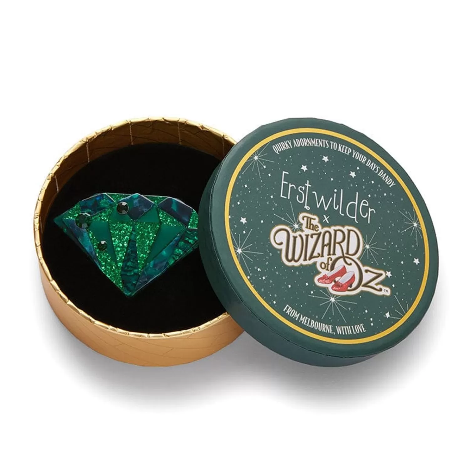 Pay No Attention To The Man Behind The Curtain. The Wizard May Not Have Been All He Was Made Out To Be But The Emeralds In Emerald City, Were Everything! With Emerald Glitter Resin And Czech Glass Crystals, This Emerald Brooch Will Serve As A Beacon For Compliments!
