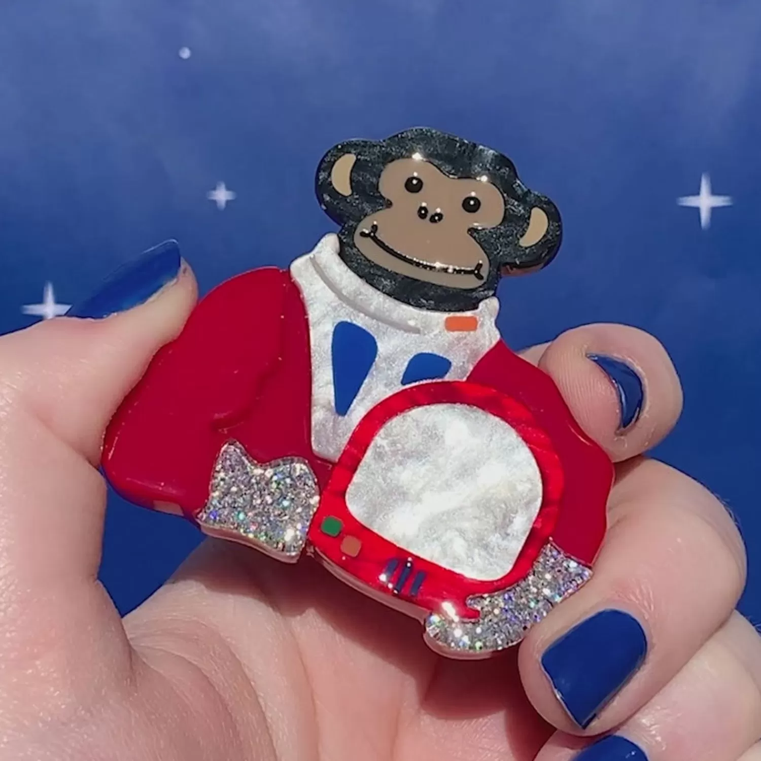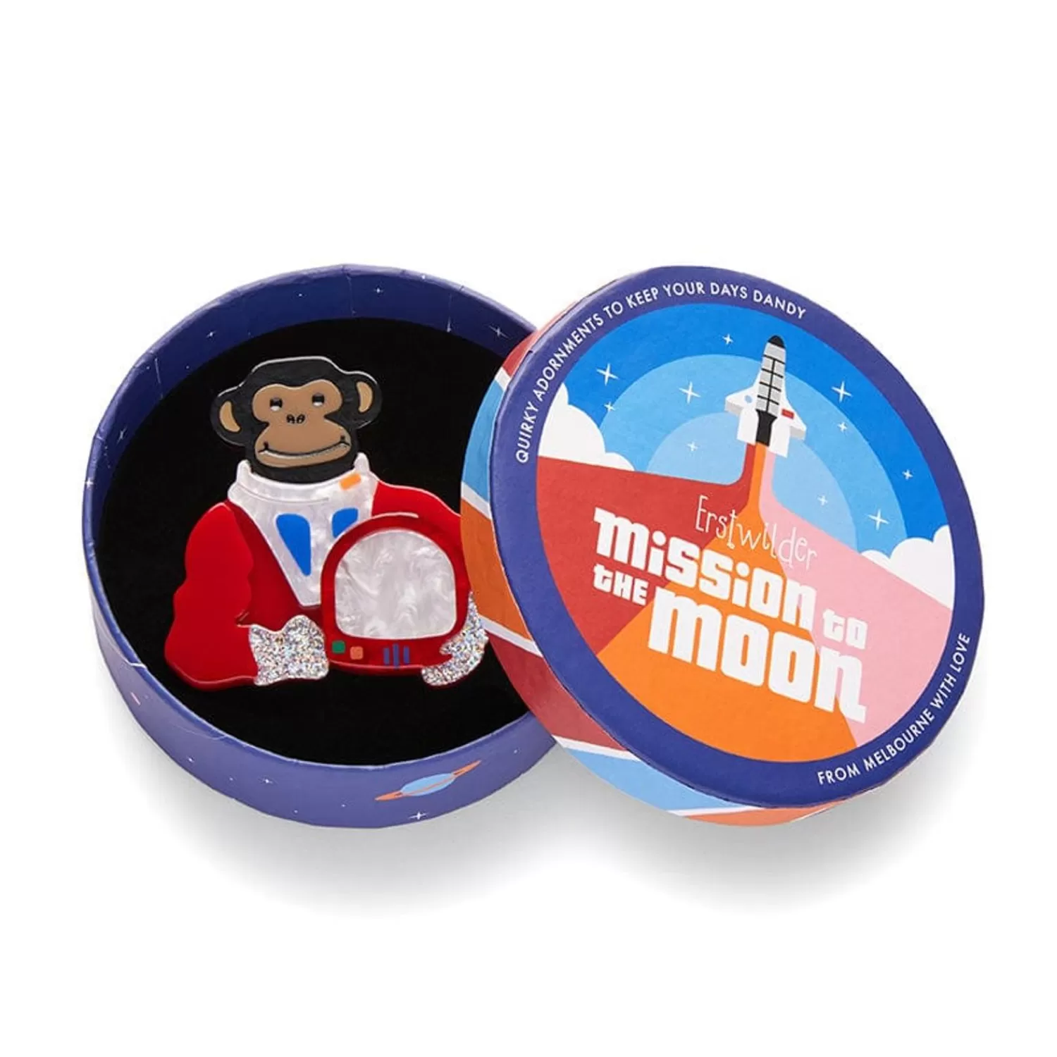 An Assortment Of Astronomical Resins Bring This Hand-Assembled Albert The Space-Faring Monkey Brooch To Life. Part Of Our Mission To The Moon Range Of Out Of This World Accessories, First Officer Takes Design Inspiration From 1960S Futurism, With Some Added Erstwilder Quirk, And Can Be Worn Together With Our This Is Your Captain Brooch When You’Re Out There Exploring.