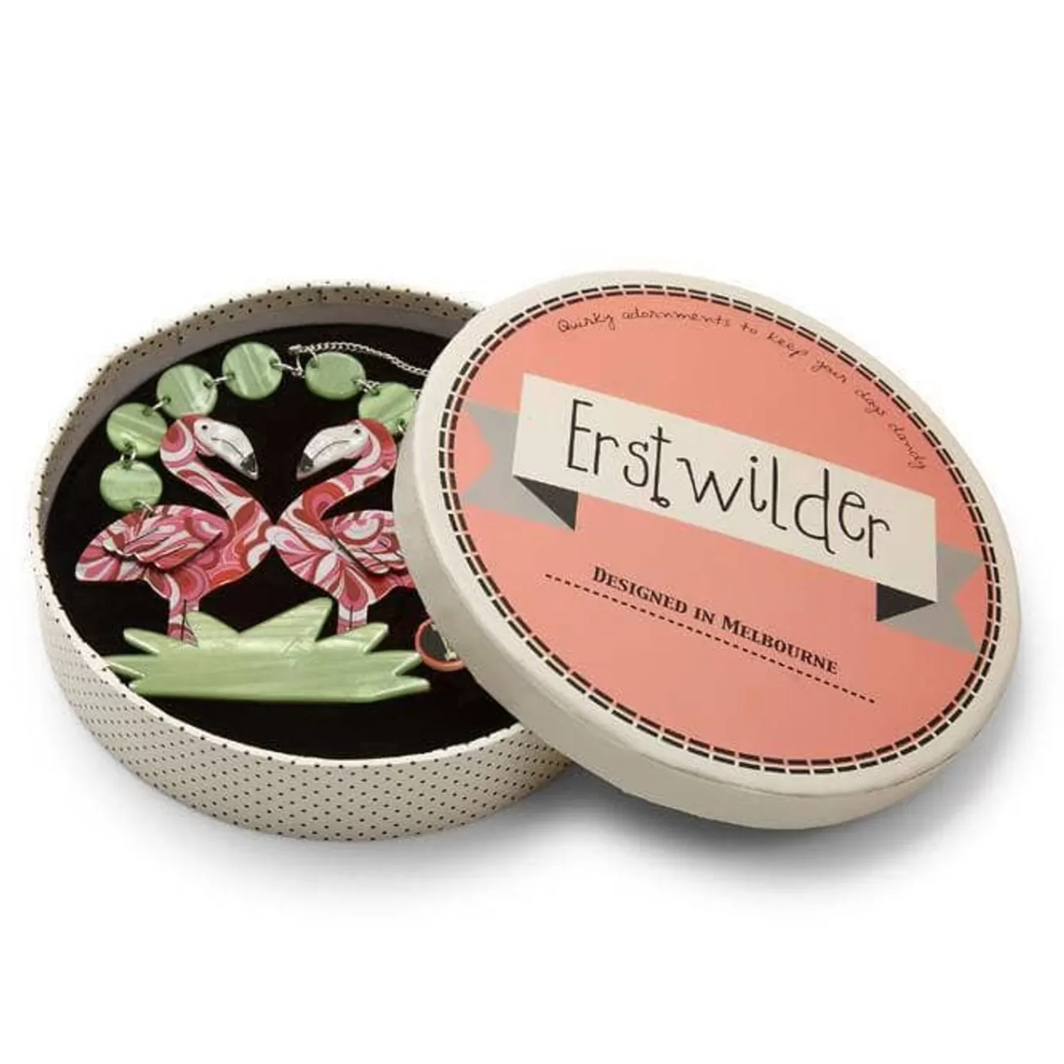 A Flamboyance In Progress, This Classic Erstwilder Dual Flamingo Necklace Has Been Created From A Combination Of Patterned And Textured Resins And Features Hand-Finished Details And A Stainless Steel Chain. Known For Their Propensity For Standing On One Leg, They’Re Anything But Flightless.Original Designer Louisa Camille