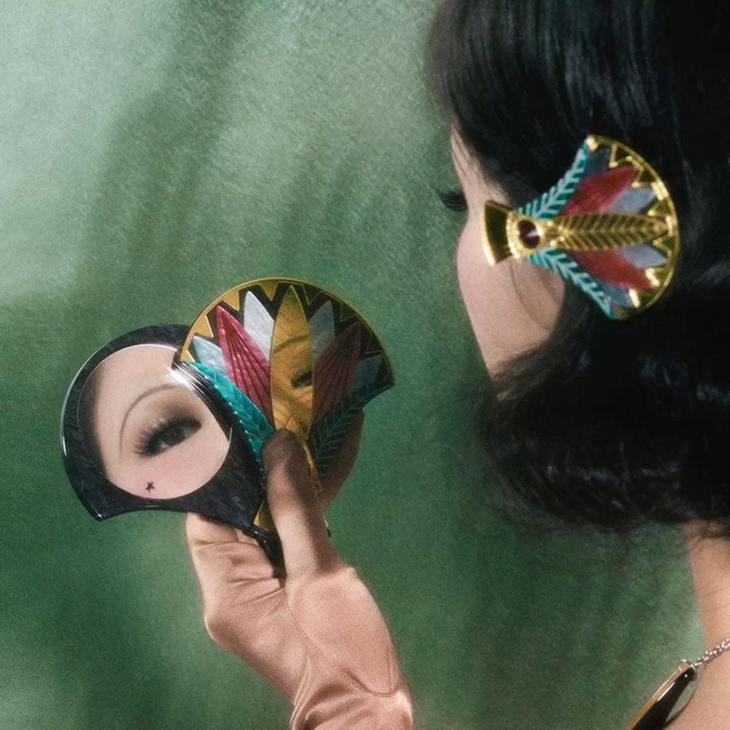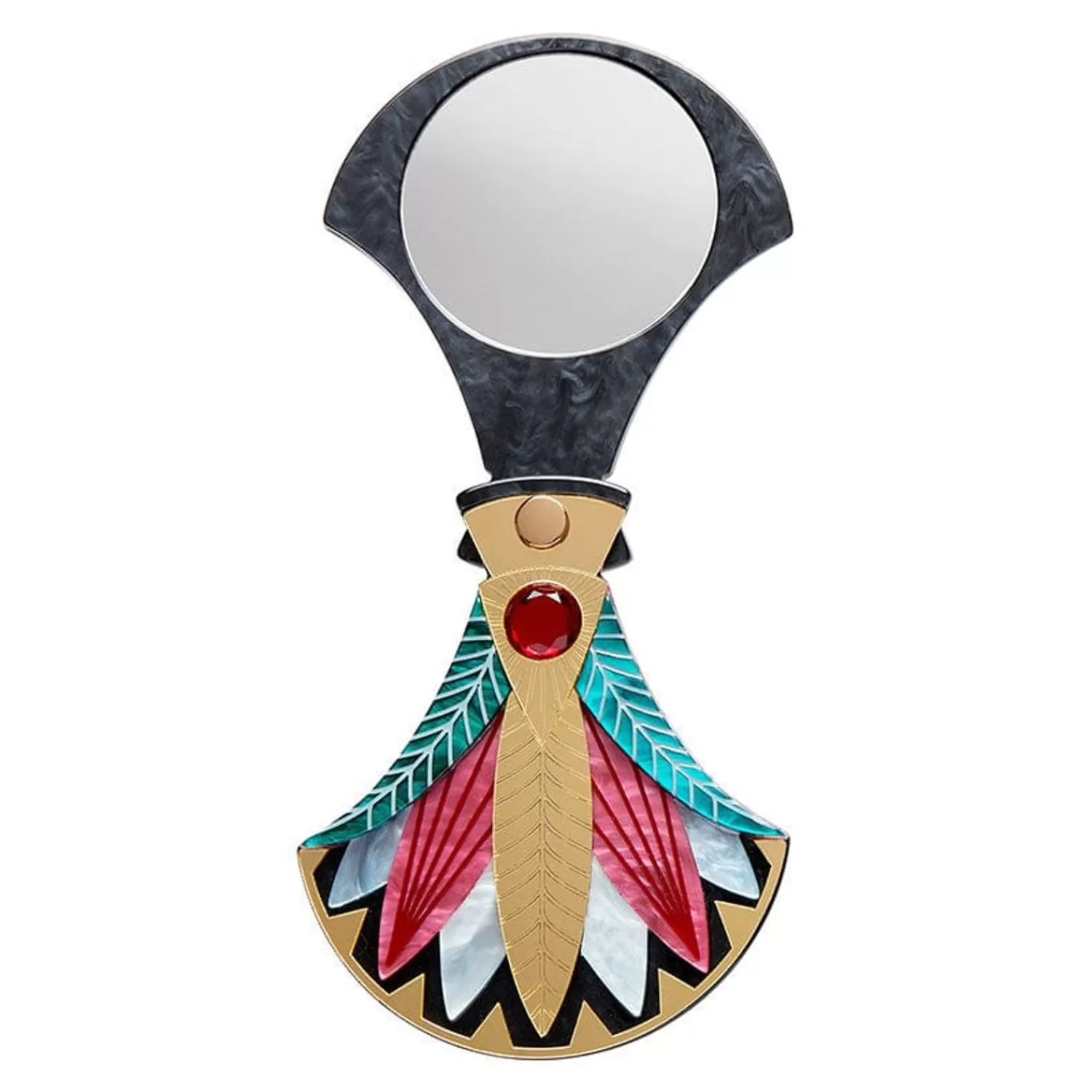 Precursor To Paper, Most Versatile Of Materials, This Gift Of The Nile Papyrus Mirror Compact Is Part Of Our Egyptian Revival Collection. Inspired By All Things Ancient Egypt, As Filtered Through The Lens Of Art Deco Design, This Classical Compact Is Brought To Life With A Sublime Selection Of Textured Resins With Hand-Painted Detail And Features A Gorgeous Gold Mirror Resin Specifically Chosen For This Release As Well As A Beautiful Czech Glass Gemstone At Its Heart. With A Swivel Hinge That Reveals A Mirror On The Inside, It Makes A Suitable Companion Piece For Our Gift Of The Nile Papyrus Brooch, Drop Earrings And Necklace, And Pairs Perfectly With Our Garden Of Blessings Brooch.