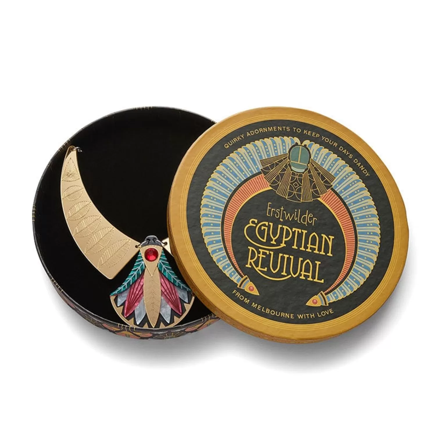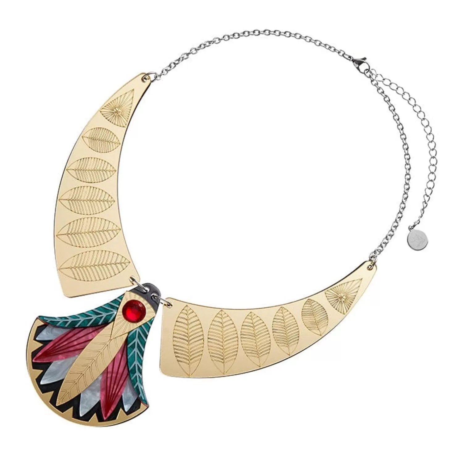Precursor To Paper, Most Versatile Of Materials, This Gift Of The Nile Papyrus Necklace Is Part Of Our Egyptian Revival Collection. Inspired By All Things Ancient Egypt, As Filtered Through The Lens Of Art Deco Design, This Statement Necklace Is Brought To Life With A Sublime Selection Of Textured Resins With Hand-Painted Detail And Features A Gorgeous Gold Mirror Resin Specifically Chosen For This Release As Well As A Beautiful Czech Glass Gemstone At Its Heart. It Can Be Worn Together With Its Matching Brooch And Drop Earrings, Makes A Suitable Companion Piece For Our Gift Of The Nile Papyrus Mirror Compact, And Pairs Perfectly With Our Garden Of Blessings Brooch.