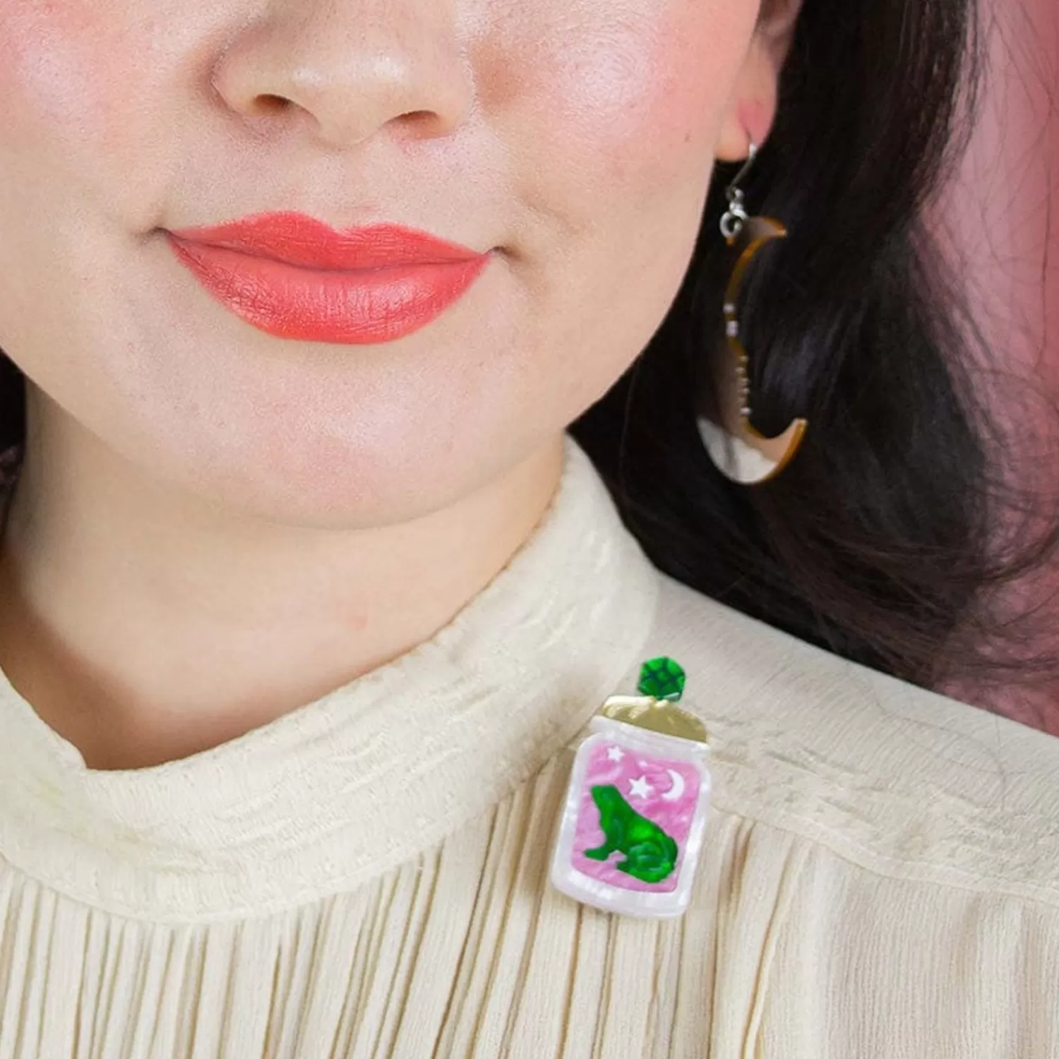 Fall In Love With This Transformative Growth Eternal Frog Brooch. This Wearable Art Accessory Has Been Hand-Assembled From A Selection Of Stand-Out Resins. Part Of Our Spellbound Release, This Frog-In-A-Jar Mini Brooch Features A Combination Of Hand-Painted And Laser-Etched Details Making It An Evolutionary Halloween Wardrobe Enhancement.