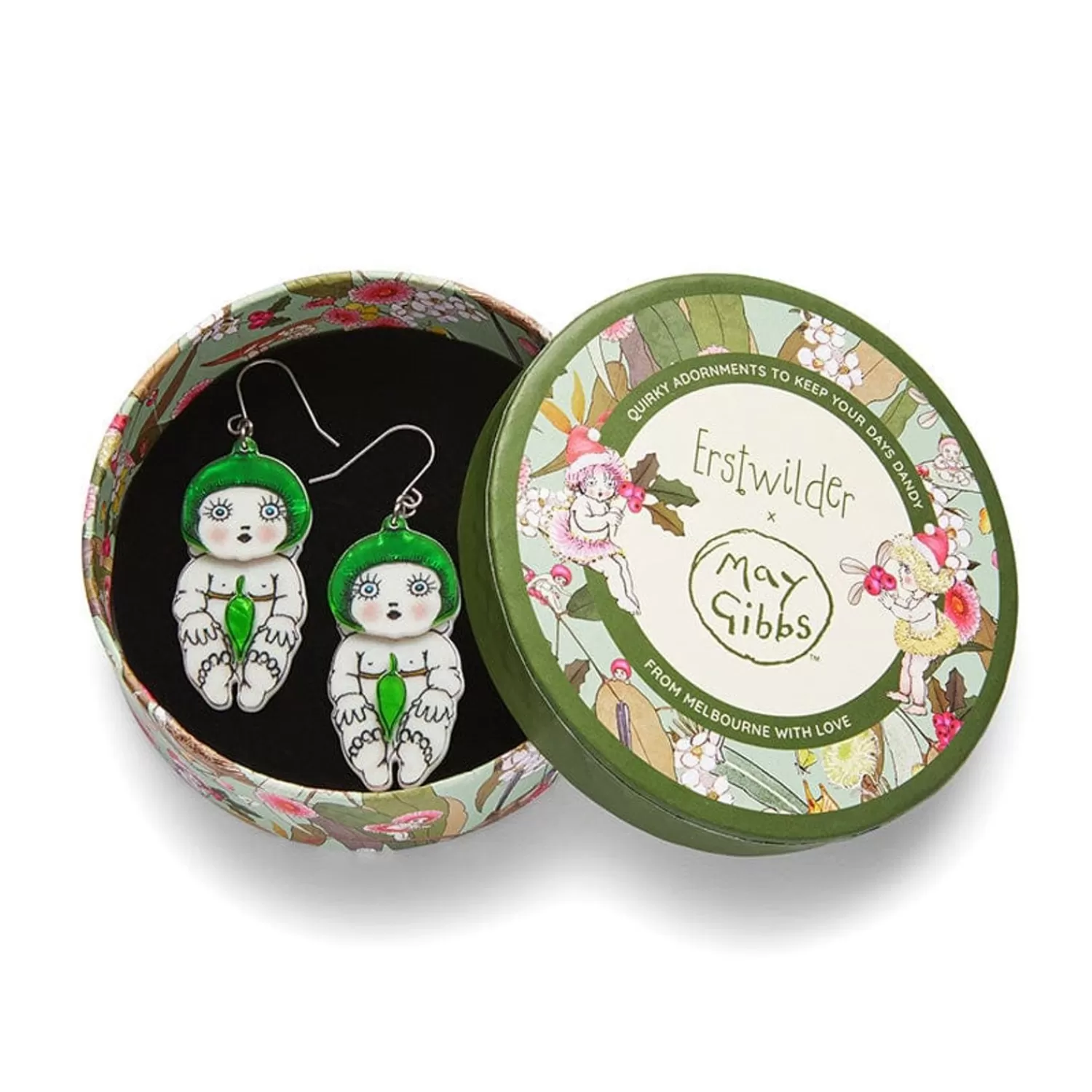 Part Of Our 2023 Erstwilder X May Gibbs Collection, These Gumnut Babies Drop Earrings Have Been Caringly Constructed From Layered Resins And Finished With A Combination Of Printing And Highly Detailed Line Work. A Product Of The Imagination Of One Of Australia’S Most-Beloved Artists, The Bush Folk Have A Soft Spot For These Inquisitive Nuts.