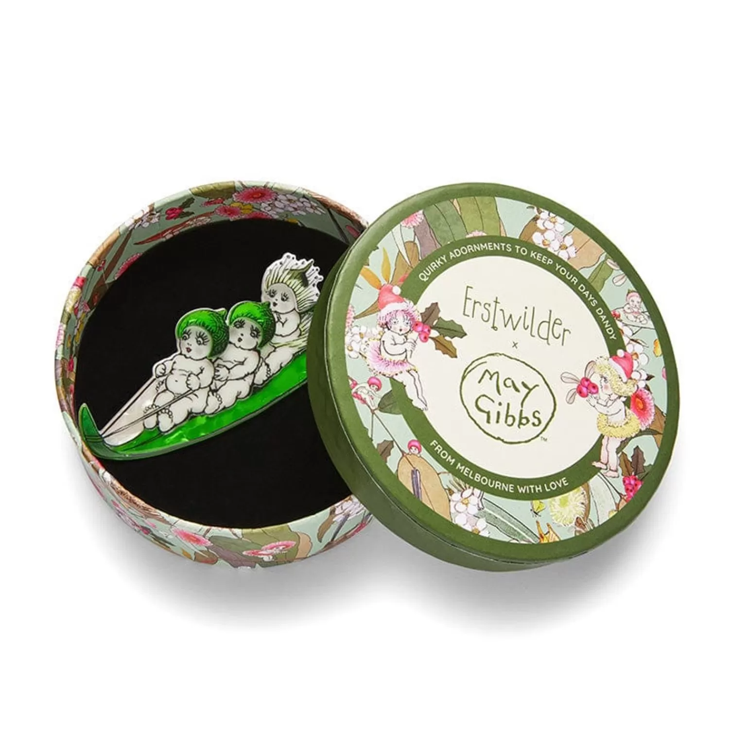 Part Of Our 2023 Erstwilder X May Gibbs Collection, This Gumnut Toboggan Brooch Has Been Caringly Constructed From Layered Resins And Finished With A Combination Of Printing And Highly Detailed Line Work. A Product Of The Imagination Of One Of Australia’S Most-Beloved Artists, These Gumnuts Are Enjoying A Wild Ride.