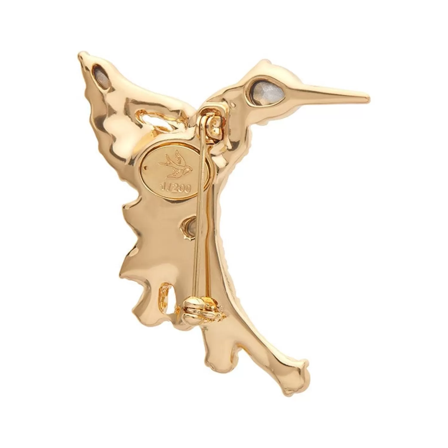 Halcyon Hummingbird Stone Set Crystal Brooch*Erstwilder New