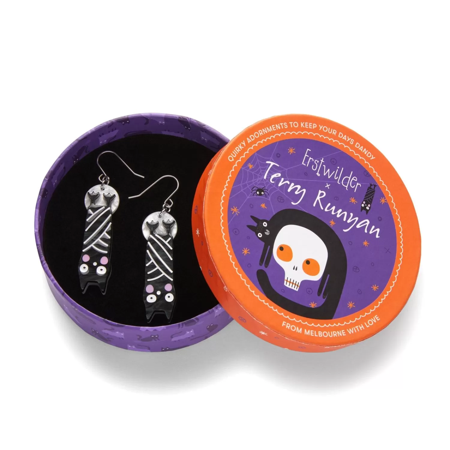 These Erstwilder X Terry Runyan Halloween-Themed Bat Earrings Have Been Hand-Assembled From Textured Resins. With A Combination Of Hand-Painted And Printed Details Adding Just The Right Amount Of Quirky Character To These Wearable Art Accessories, Halloween Hang-Up Are A Fang-Tastic Way To Add Some Nocturnal Flair To Your Wardrobe.