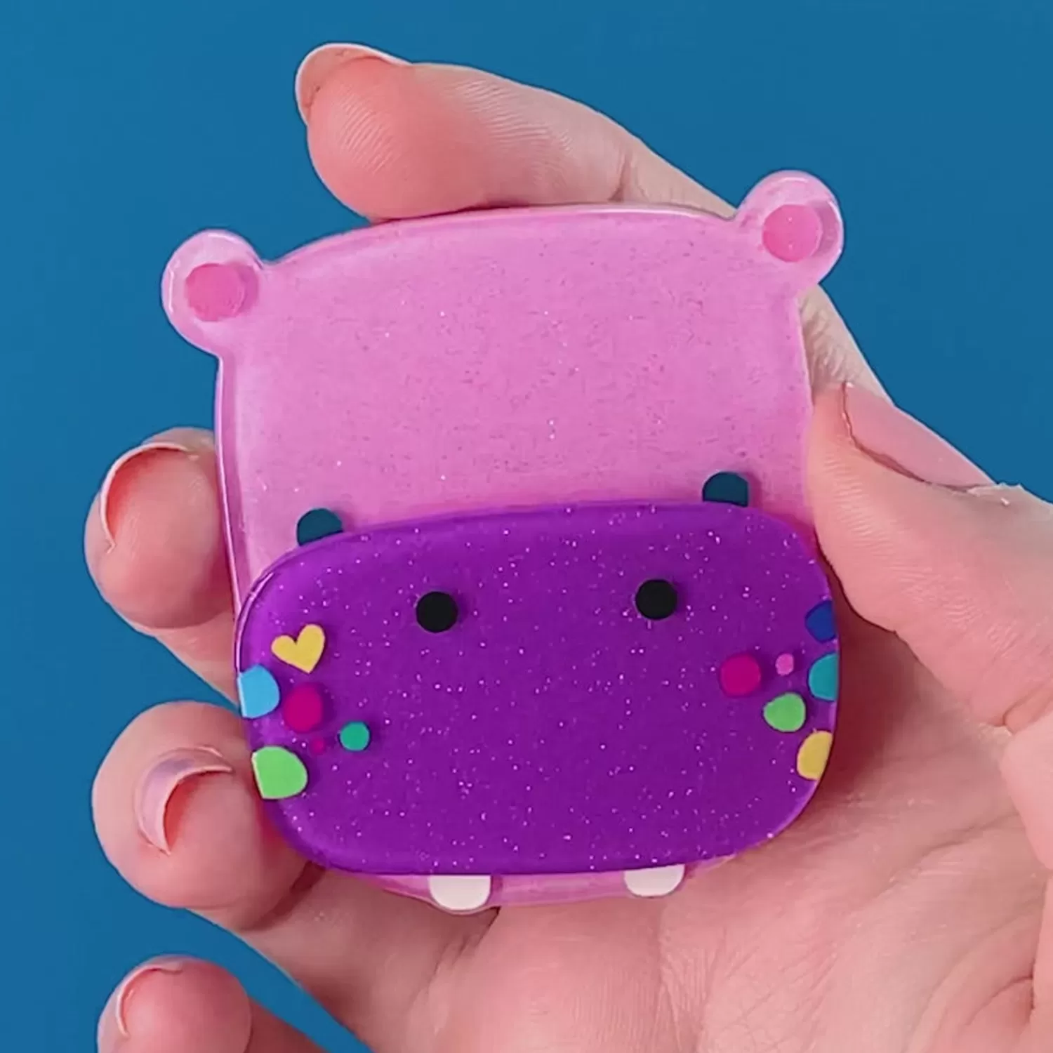 This Erstwilder X Kasey Rainbow Harrie The Hippo Brooch Has Been Hand-Assembled From A Combination Of Colourful Resins And Finished With Hand-Painted Details. A Resident Of The Wonderful World Of Kutopia, Harrie Is Here To Show You How To Take It Easy.