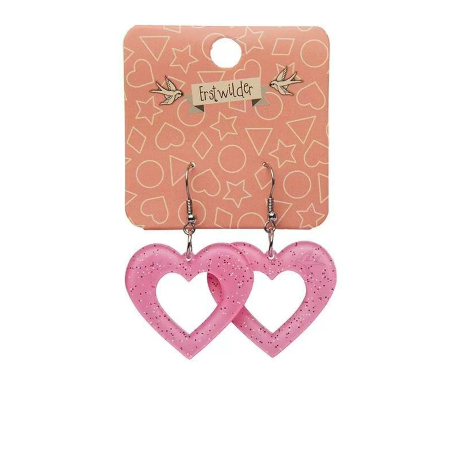 Fall In Love With These Heart-Shaped Erstwilder Essentials Drop Earrings Are Made With Pink Glitter Resin. They Make For That Perfect Pop Of Colour To Compliment Your Outfit, Or To Match With Your Favourite Resin Or Acrylic Brooch Or Necklace. Shop All Of Your Favourite Essentials And Save More The More You Buy!