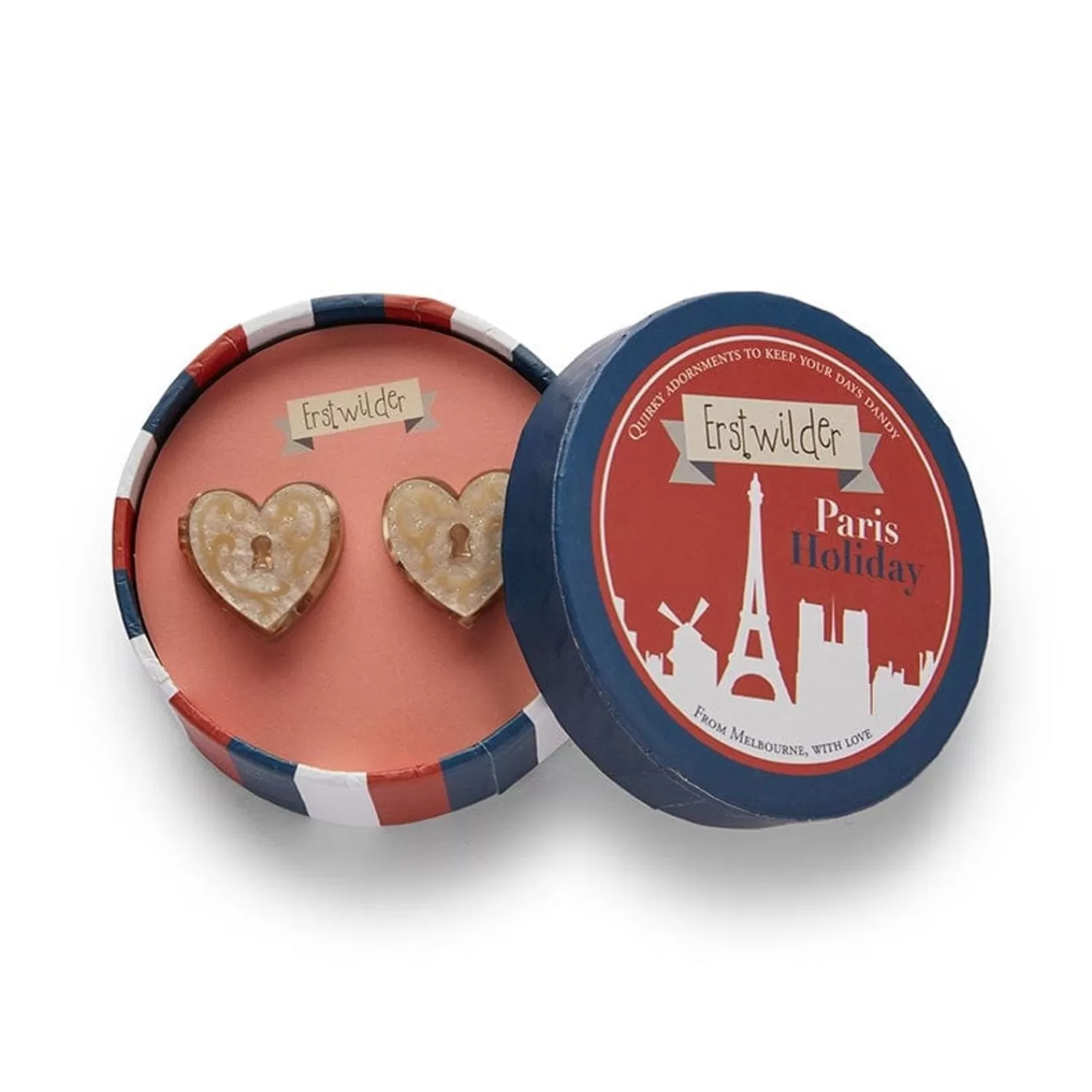 Reflecting Paris As ‘The City Of Love’, We’Re Sure You’Ll Love These Heart Locket Inspired Mixed Resin Earrings In Gold Ripple Resin And Glitter. Pair It With The Heart Of Caché Necklace Or Brooch To Complete Your Look Of Love.