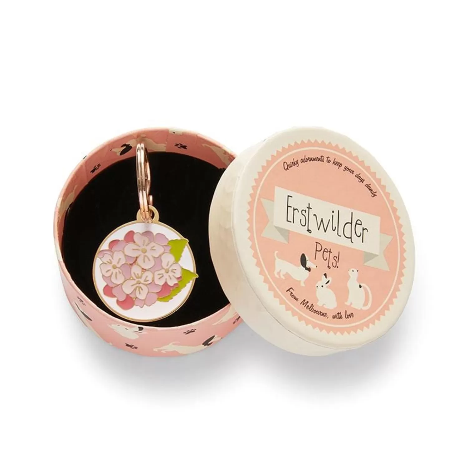 Made From Non-Allergenic Stainless Steel With Gold Plating And Featuring Hard Enamel, This Tag Is Waterproof And Suitable For All Indoor Or Outdoor Activity. The Reverse Side Features An Embossed Erstwilder Bird Logo But Leaves Space For Customisation, So You Can Easily Add Your Pets Name And A Contact Number. All Pet Charms Include A Split Keyring For Easy Attaching To Your Pet’S Collar. Don’T Have A Pet Or Just Love This For Yourself? That’S Fine Too! You’Ll Find This Pet Charm Doubles Perfect As A Mini Keyring Too. Collar Not Included.30Mm X 34Mm (H X W)Heartfelt Hydrangea Enamel Pet Charm*Erstwilder Online
