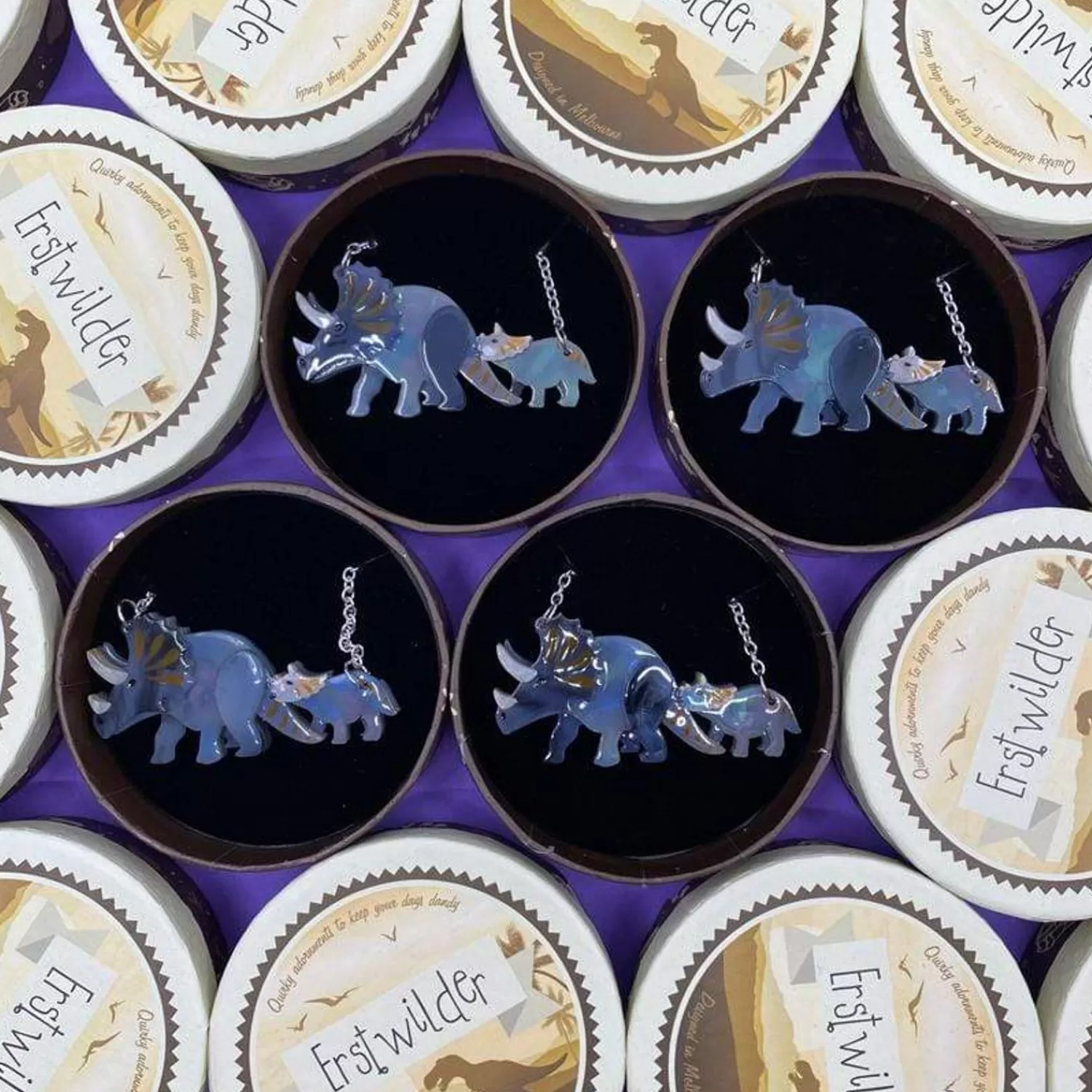 A Mother’S Love Knows No Bounds! Our Gorgeous ‘Herbivore Heritage’ Necklace Set Features Two Mottled Resin Triceratops, One Big, One Little, With Hand-Painted And Hand-Assembled Details. Add These Familial Fashion Icons To Your Collection While You Can!