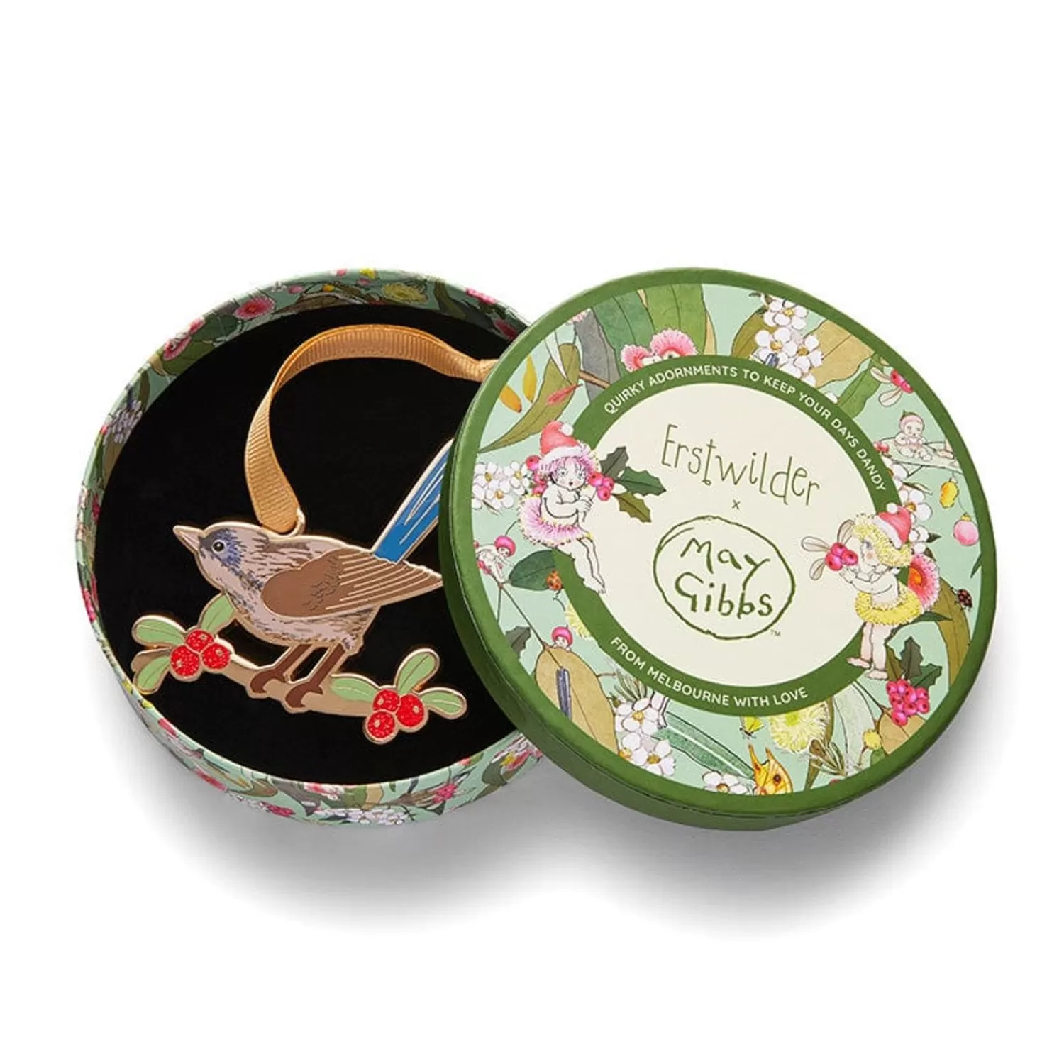 Part Of Our 2023 Official Collaboration Collection Release, This Enamel Statement Tree Ornament Is Based On The Iconic Holly Wagtail Illustration By Australian Artist And Author May Gibbs. With Limited-Run Numbers For Worldwide Release, This Charming Piece Makes The Perfect Gift Or Decoration For Lovers Of Christmas And/Or May Gibbs.