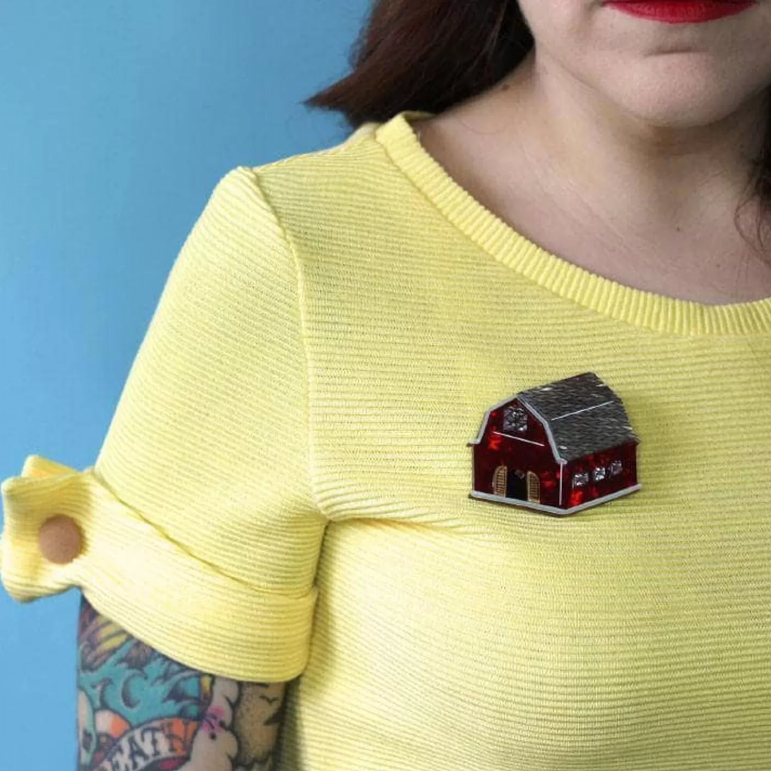 Designed In Collaboration With Junebugs And Georgia Peaches, This Traditional Barn Brooch House Dances Of Both The Line And Square Variety. Created From A Combination Of Textured And Patterned Resins With Hand-Painted Details, A New Brooch That’S As Exciting As A Change Of Partner. Modelled By @Modernjunecleaver And @AmeliajetsonOriginal Designer Carmen Hui