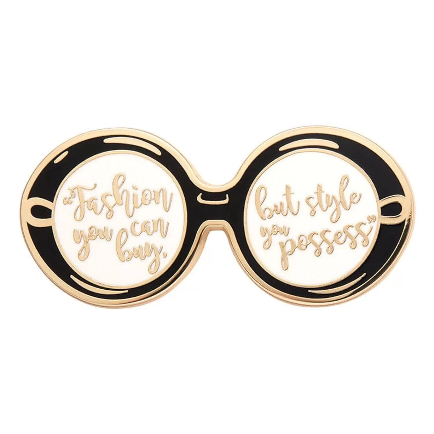 This Limited-Run Erstwilder X Iris Apfel Hard Enamel Pin Showcases The Trademark Eye Glasses Of The Celebrated American Interior Designer And Iconic Trendsetter, Embellished With A Quintessentially Iris Quote.