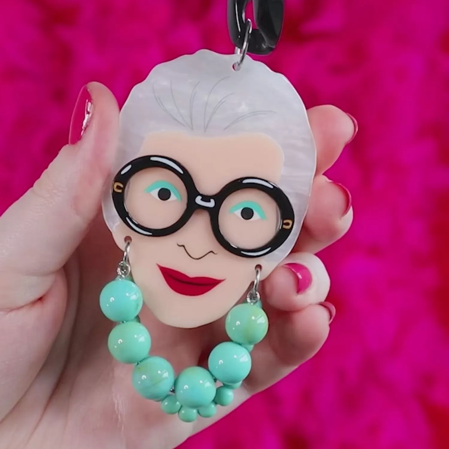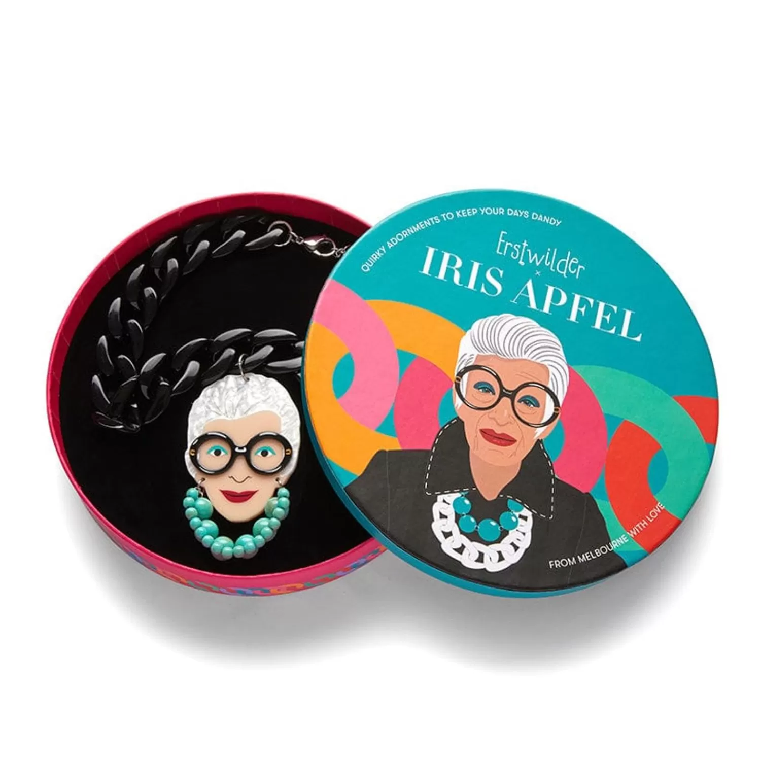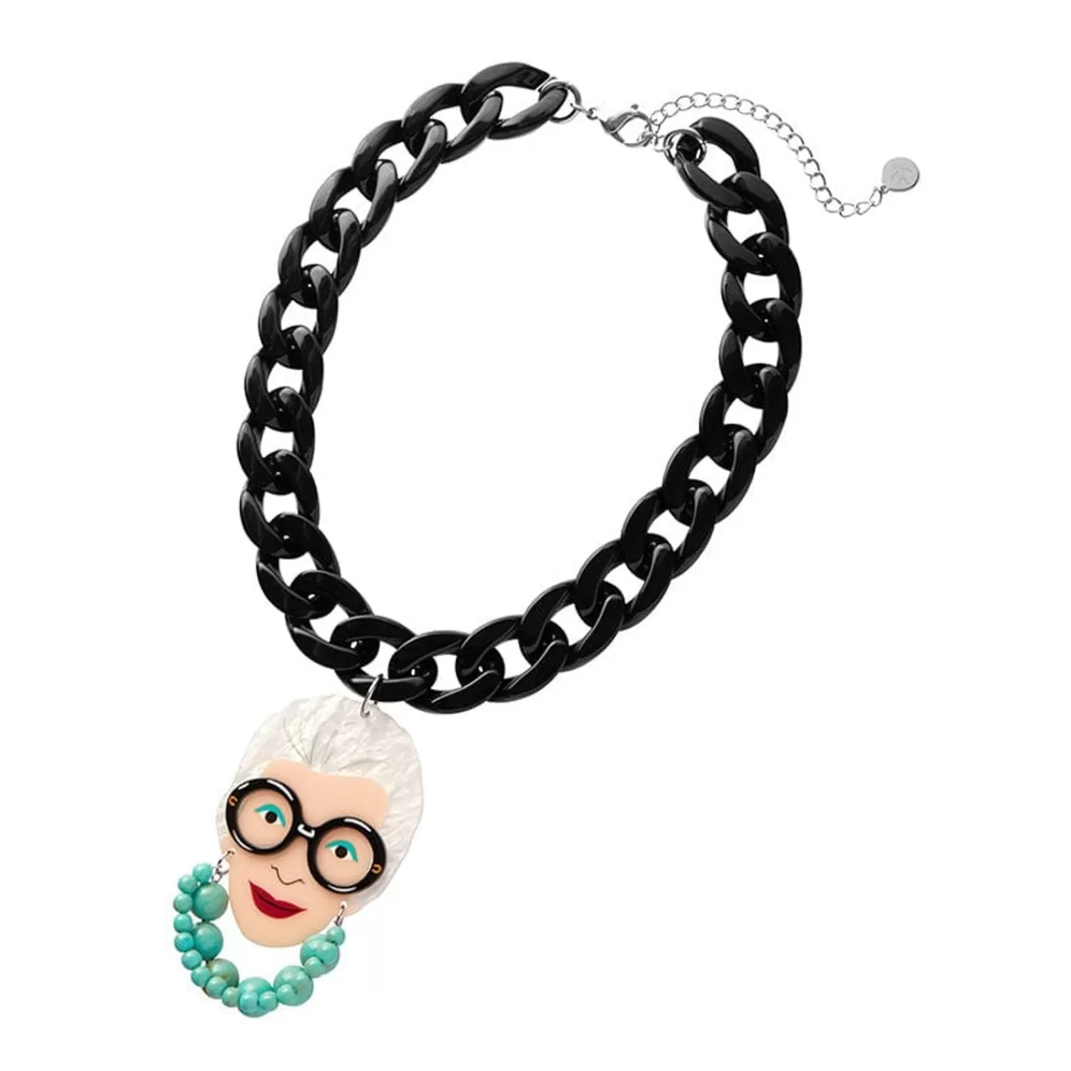 This Official Erstwilder X Iris Apfel Statement Necklace Showcases Iris’ Iconic Portrait And Style, Sporting Her Signatu…