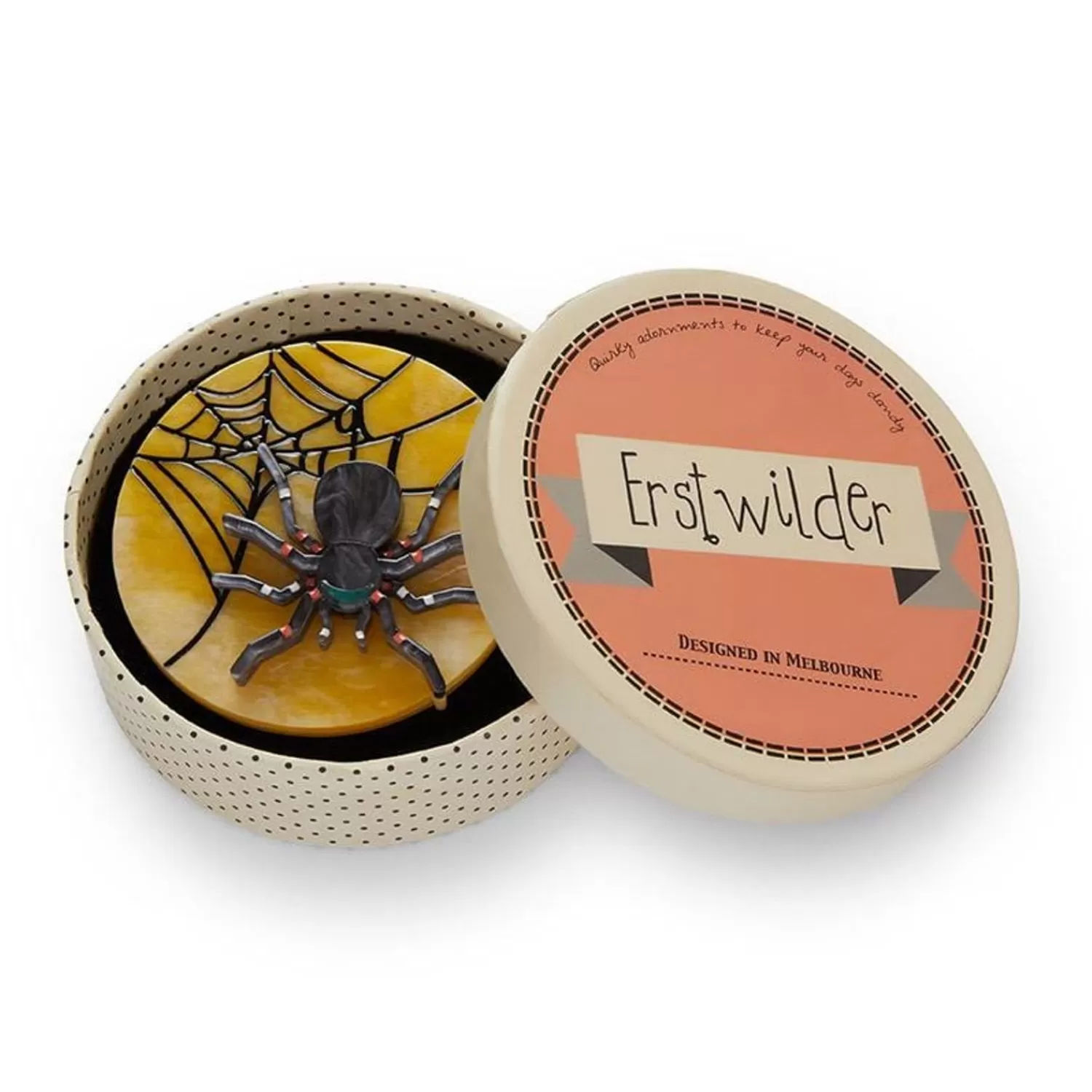 If You Find Yourself By Any Water Spouts, You Might Meet Our New Friend. With A Combination Of Textured Resins And Hand-Painted Details, This Little Spider Has The Perfect Autumn Pallet For All Your Halloween Needs. Pair With Our ‘On Haunted Hill’ Brooch For Some Circular, Spooky Season Dressing.