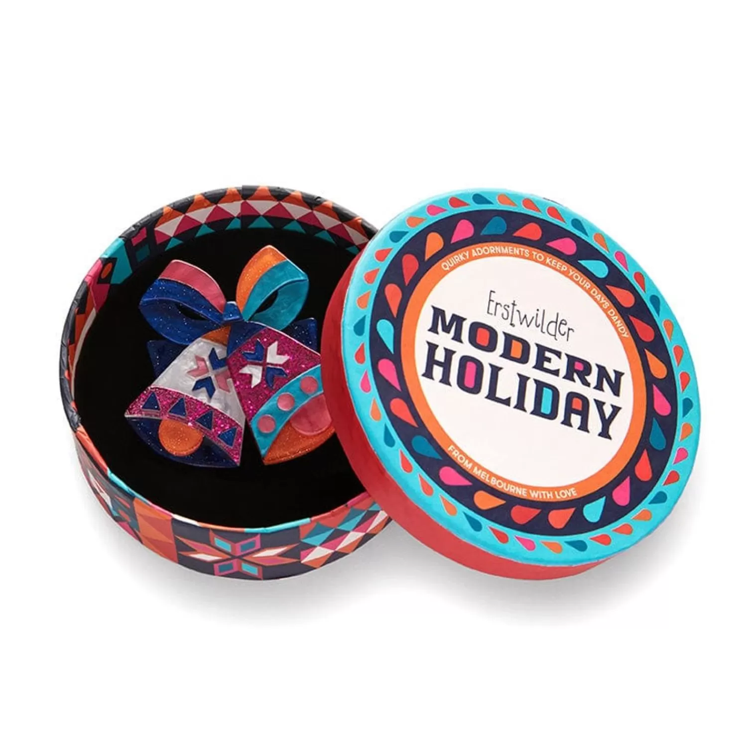 This Mid-Century Inspired Brooch Is For All Those Who Agree That Jingle Bells Rock! Hand-Assembled From A Mix Of Colourful Textured And Glitter Resins And With Inset Pieces, The Jingle Bell Rock Brooch From The Modern Holiday Accessories Collection Is Vibrant And Fun Way To Bring Some Festive Flair To Your Christmas And Holiday Outfits.