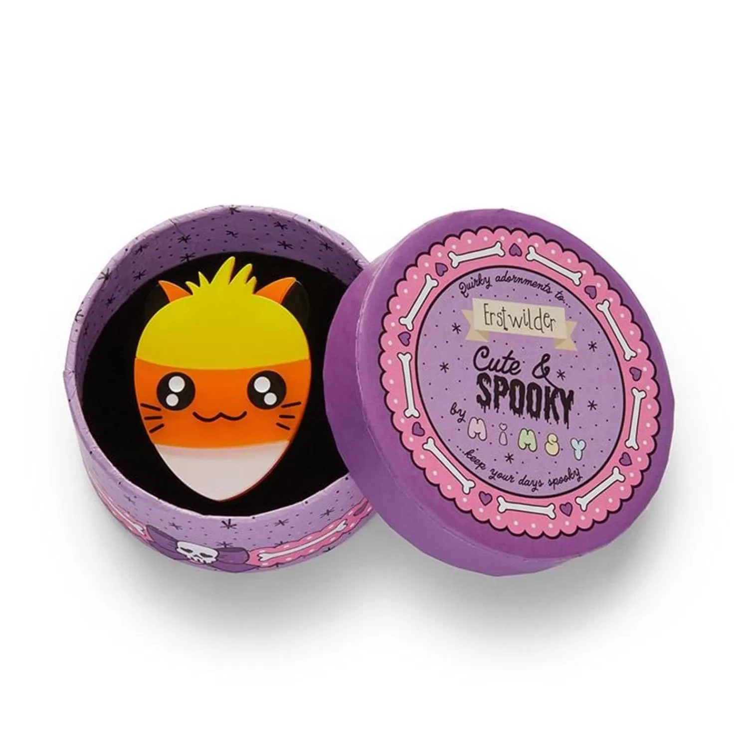 Cute As A Button And Twice As Tasty! This Cute Kitty Candy Corn Features Hand-Assembled Details And Gorgeous Resins. Erstwilder X Mimsy Bring Tricks And Treats!