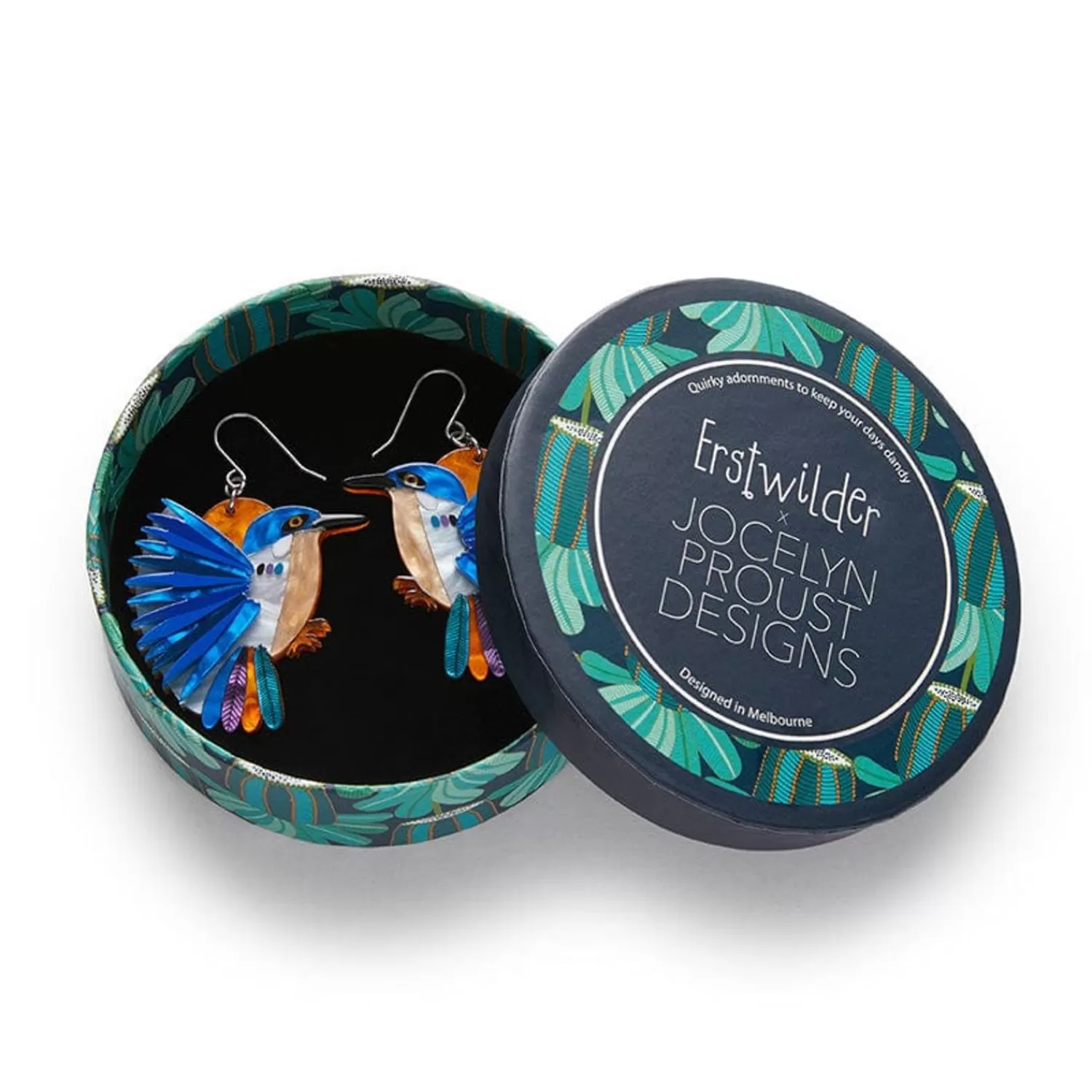Hand-Assembled From A Selection Of Coloured Textured Resins And Featuring A Combination Of Printing And Painting Applications, These Kingfisher-Inspired Earrings Are Part Of The Second Erstwilder X Jocelyn Proust Collaboration And Make For A Fabulous Statement Accessory. For A Perfect Pairing, Pick Up The Matching Kingfisher Brooch Too!