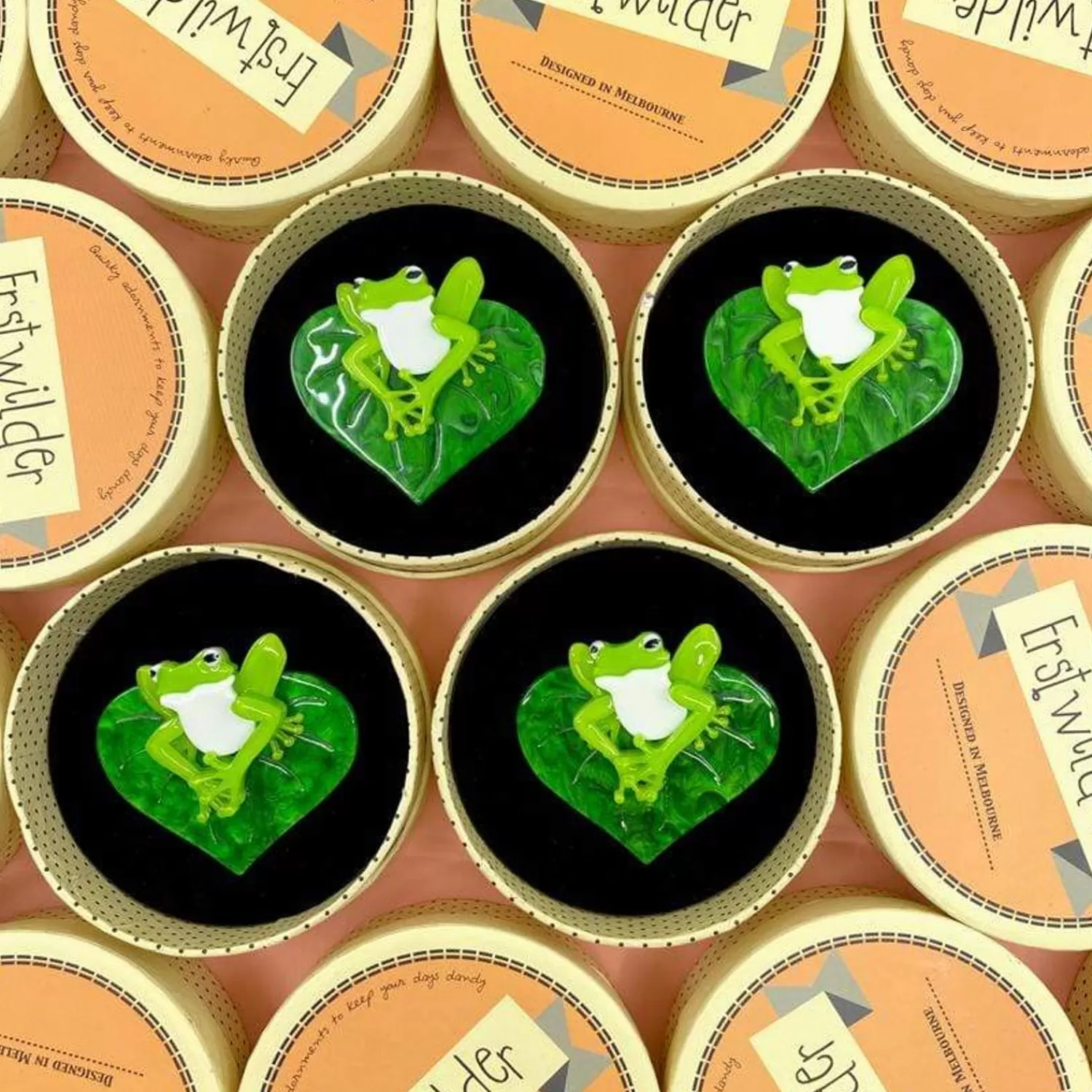 One Little Frog, On A Little Lily Pad. With A Combination Of Bright Greens Resins As Well As Hand-Assembled Details, Lachy Is As Lucky As A Clover And Can Jump Twice As High, At Least! Take A Swing Through The Pond For A Relaxing Spa Day, And Leave With A Lachy Brooch Of Your Own!