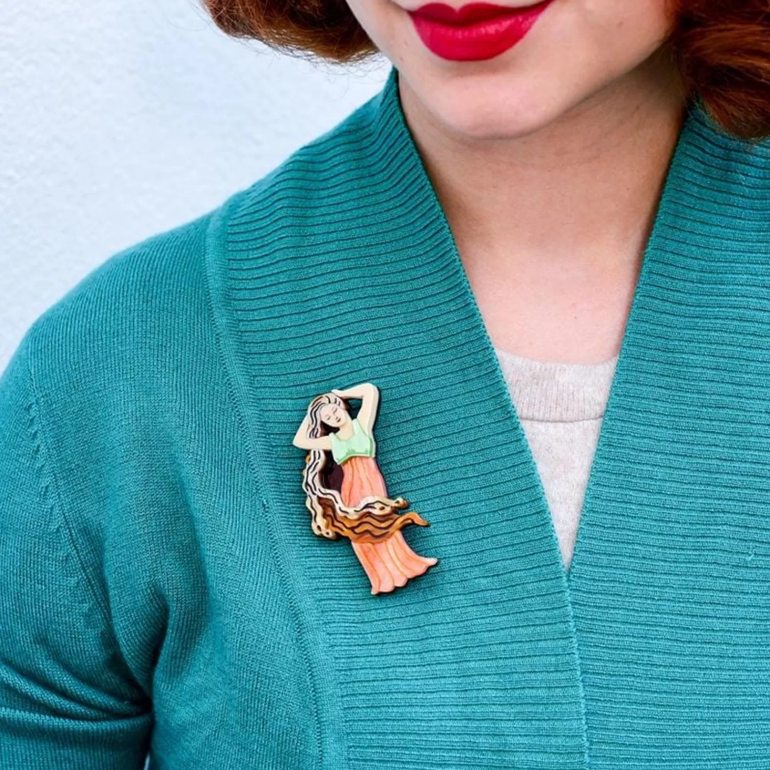 She Looks So Peaceful, So Full Of Life. With Beautiful Flowing Textured And Glitter Resins, This Brooch Is Hand-Painted And Hand-Assembled To Reflect The True Artistry Of The Art Nouveau Period. Add A Touch Of The Lavish To Your Outfit Of The Day, With This Lady Of Love.