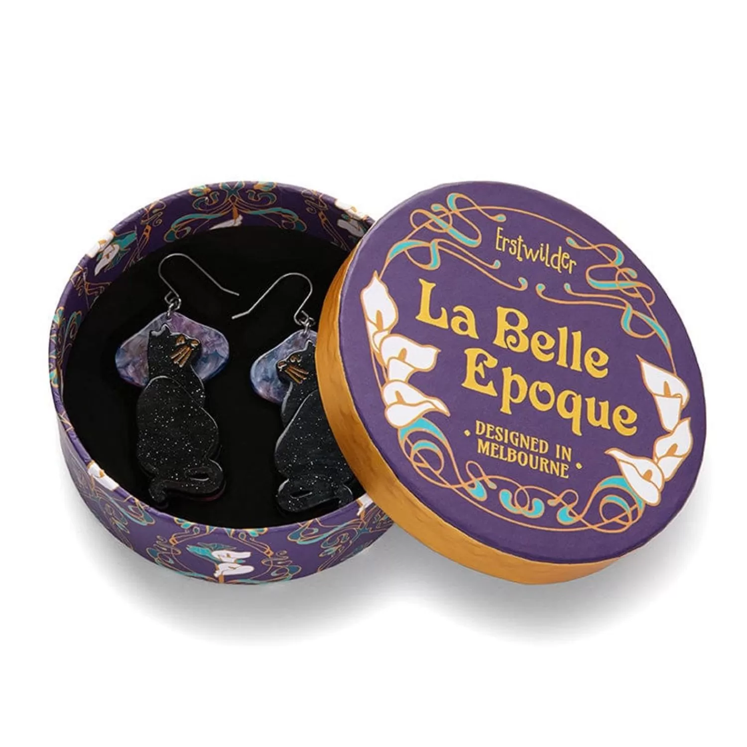 Indulge Your Appreciation For Decorative Wearable Art With These Art Nouveau Black Cat Earrings. Hand-Crafted From Textured Resins With Exquisite Hand-Finished Details, This Piece Pairs Perfectly With Their Matching Brooch, Enamel Pin And/Or Necklace To Complete The Picture Of Feline Grace.
