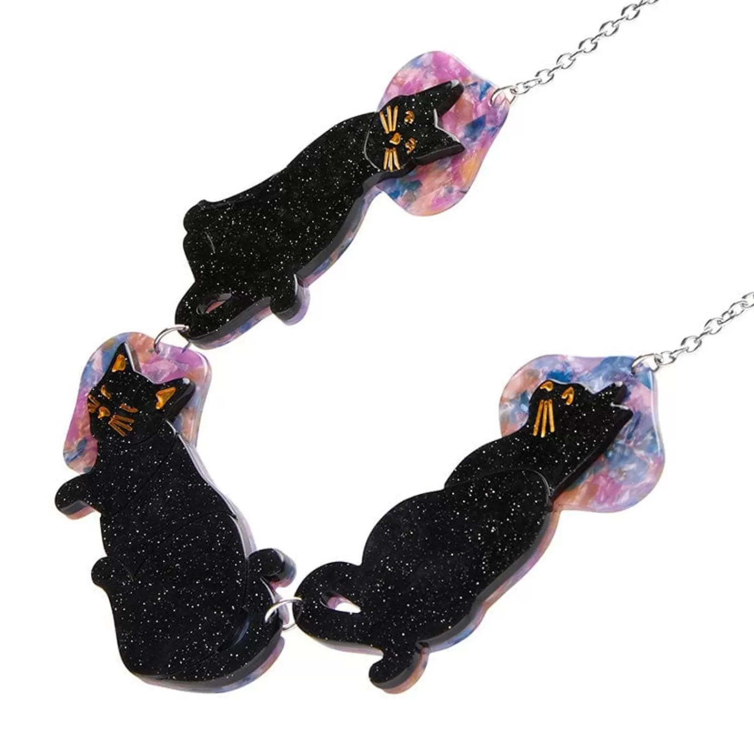 Indulge Your Appreciation For Decorative Wearable Art With This Art Nouveau Black Cat Necklace. Hand-Crafted From Textured Resins With Exquisite Hand-Finished Details, This Piece Pairs Perfectly With It’S Matching Brooch, Earrings, And/Or Enamel Pin To Complete The Picture Of Feline Grace.