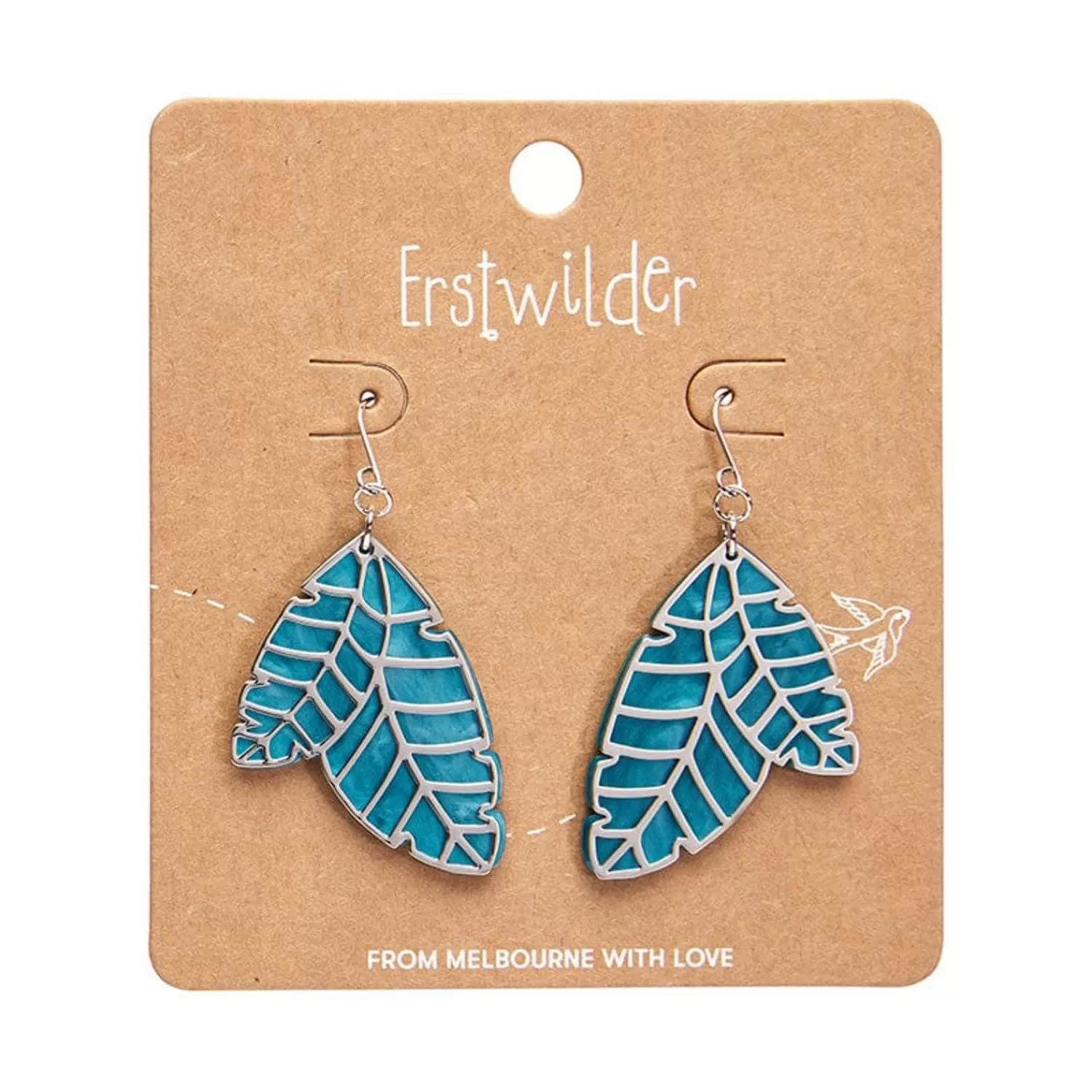 40Mm X28Mm (H X W)Leaf Textured Emerald Resin Drop Earrings – Silver*Erstwilder Best Sale