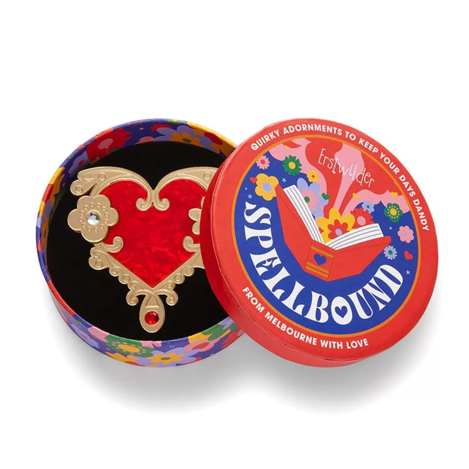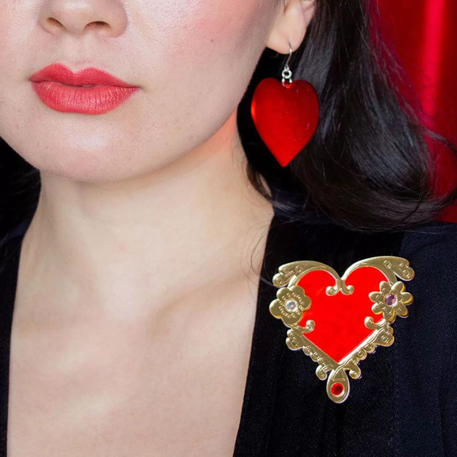 Fall In Love With This Irresistible Love Or Narcissism Heart Brooch Design. This Wearable Art Accessory Has Been Hand-Assembled From A Selection Of Stand-Out Resins. Part Of Our Spellbound Release, This Jewelled Love Heart Brooch Features A Combination Of Hand-Painted And Laser-Etched Details Making It An Engaging Halloween Wardrobe Embellishment