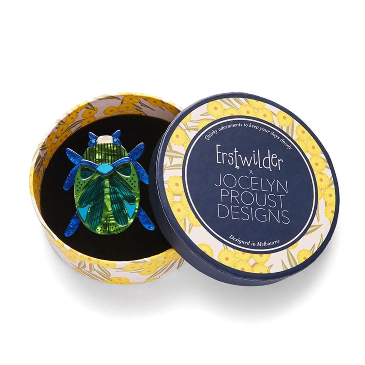 Hand-Assembled From A Selection Of Colourful Resins And Featuring A Combination Of Printed And Painted Details, This Bright Green Beetle Brooch Is Part Of The Third Erstwilder X Jocelyn Proust Designs Collaboration. Designed To Bring Good Fortune To Your Outfit And Your Day, Luck Of The Beetle Pairs Exceptionally Well With Its Matching Earrings, Hair Clips Or Hard Enamel Pin.