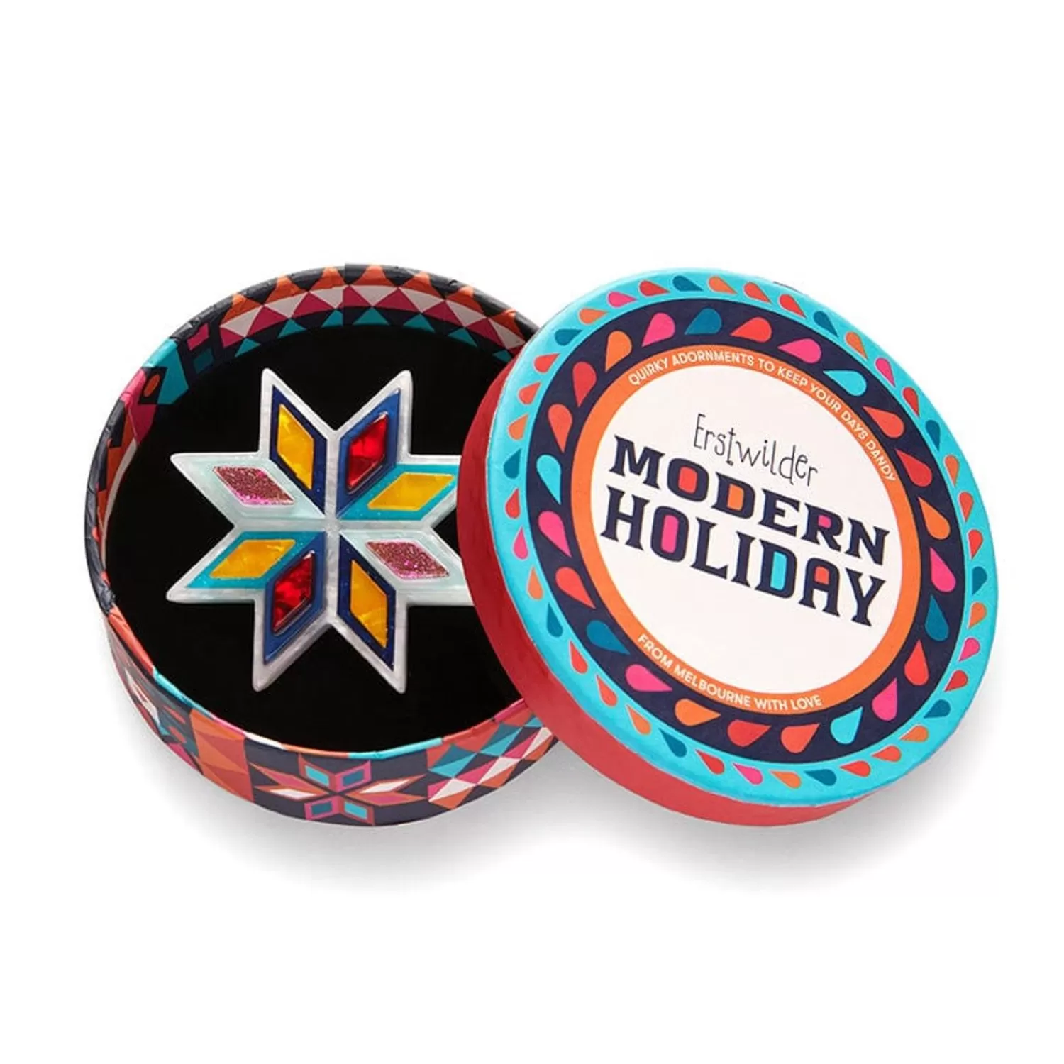 A Major Seasonal Symbol With A Mid-Century Design Aesthetic, Our Make My Wish Come True Brooch Has Been Hand-Assembled From A Mix Of Colourful Textured And Glitter Resins For The Modern Holiday Accessories Collection. Pin It To Your Favourite Festive Outfits And Be The Star Of Any Gathering. Love This Design? You’Ll Also Discover It Available As An Enamel Pin, And An Enamel Tree Ornament.