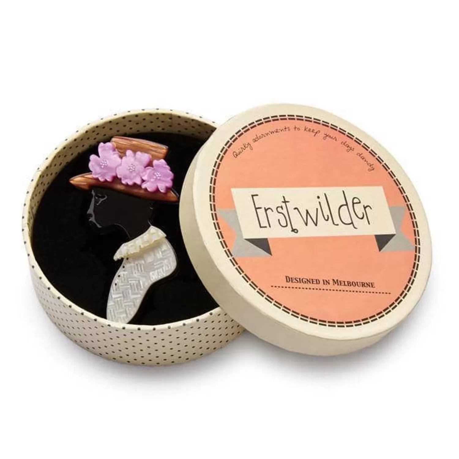 Not Just A Simple Silhouette, This Woman In Profile, With Flower Adorned Hat, Brooch Has Been Created From A Combination Of Solid And Textured Resins. Featuring Hand-Finished Details, She Can Be A Classy Addition To Any Outfit.